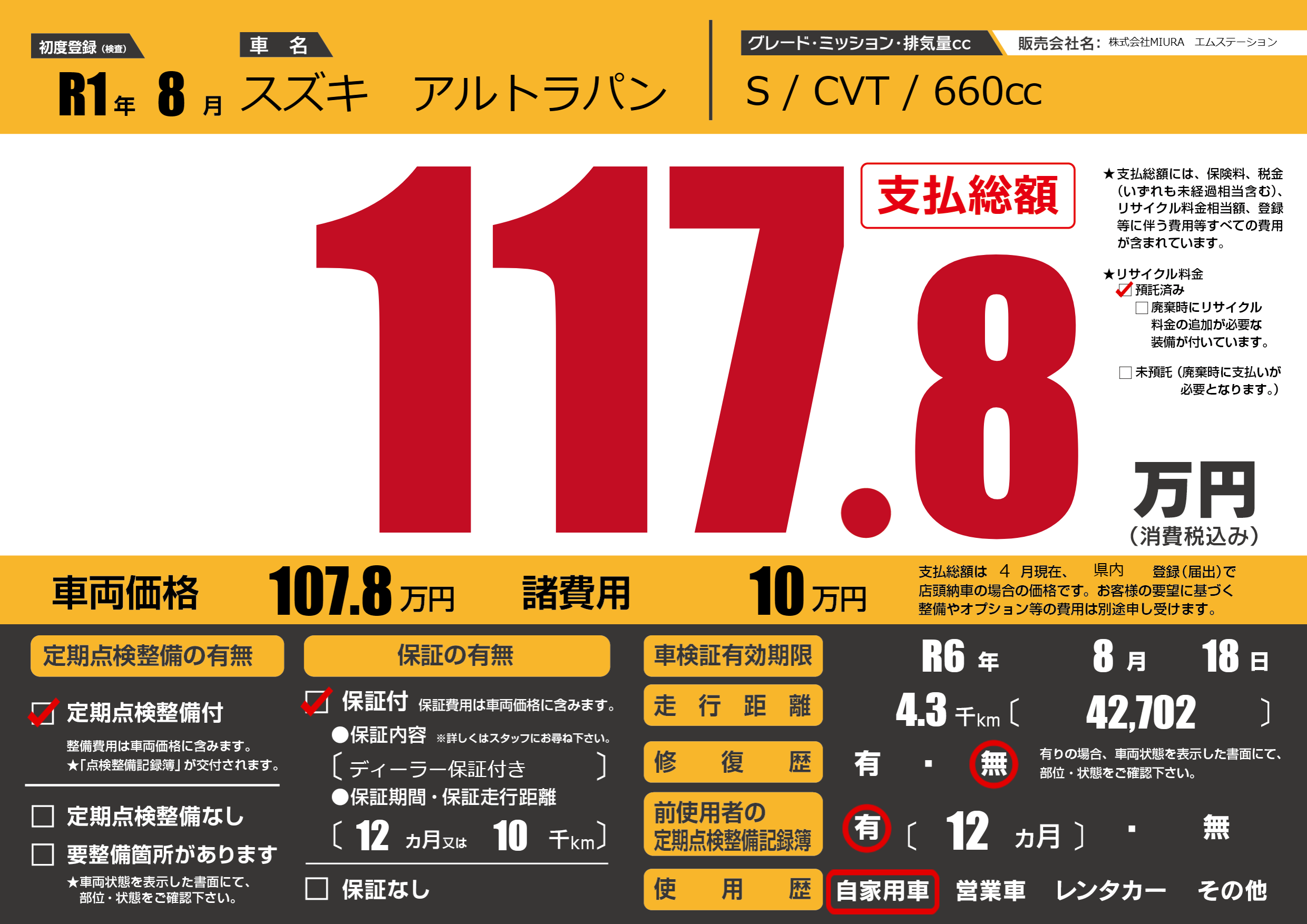 | 車検制限 | R6年 8月 18日 | ||