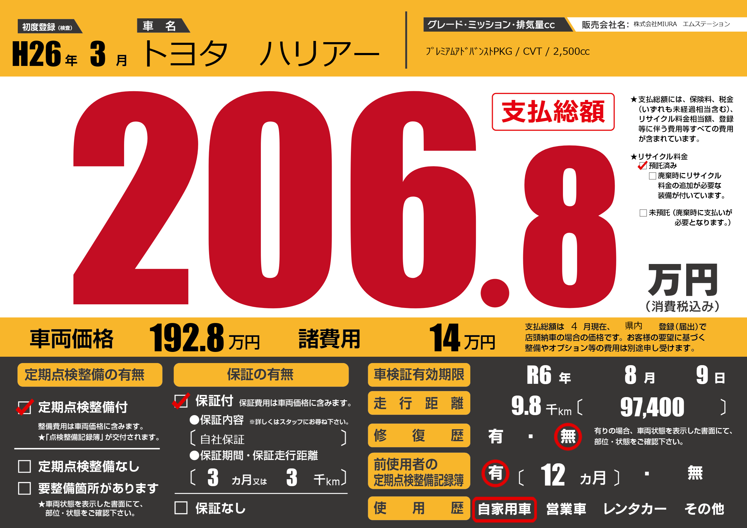 なし | 車検制限 | R6年8月9月 |