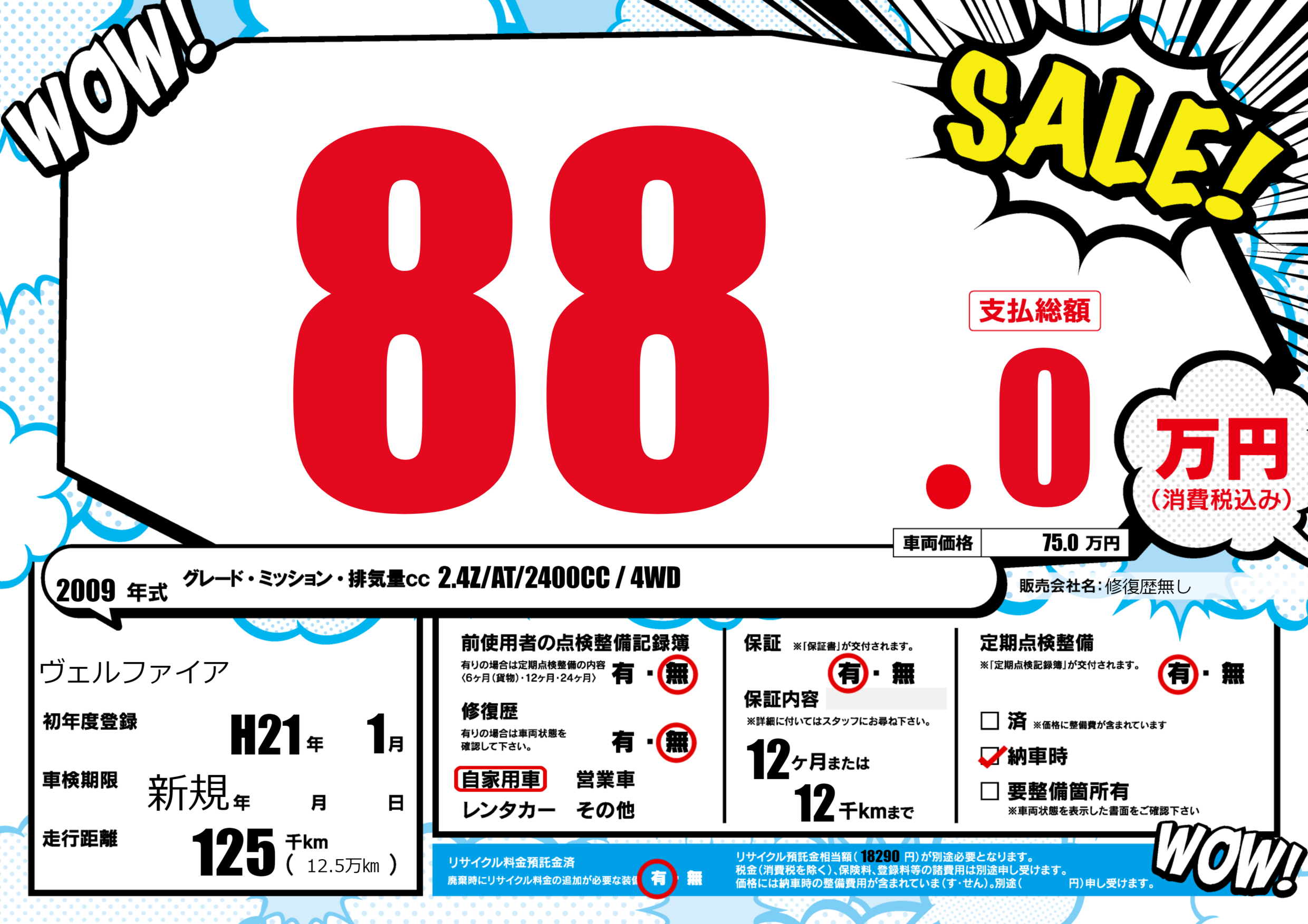 保証付き 保証内容(---) 12ヶ月または(12)千kmまで |
