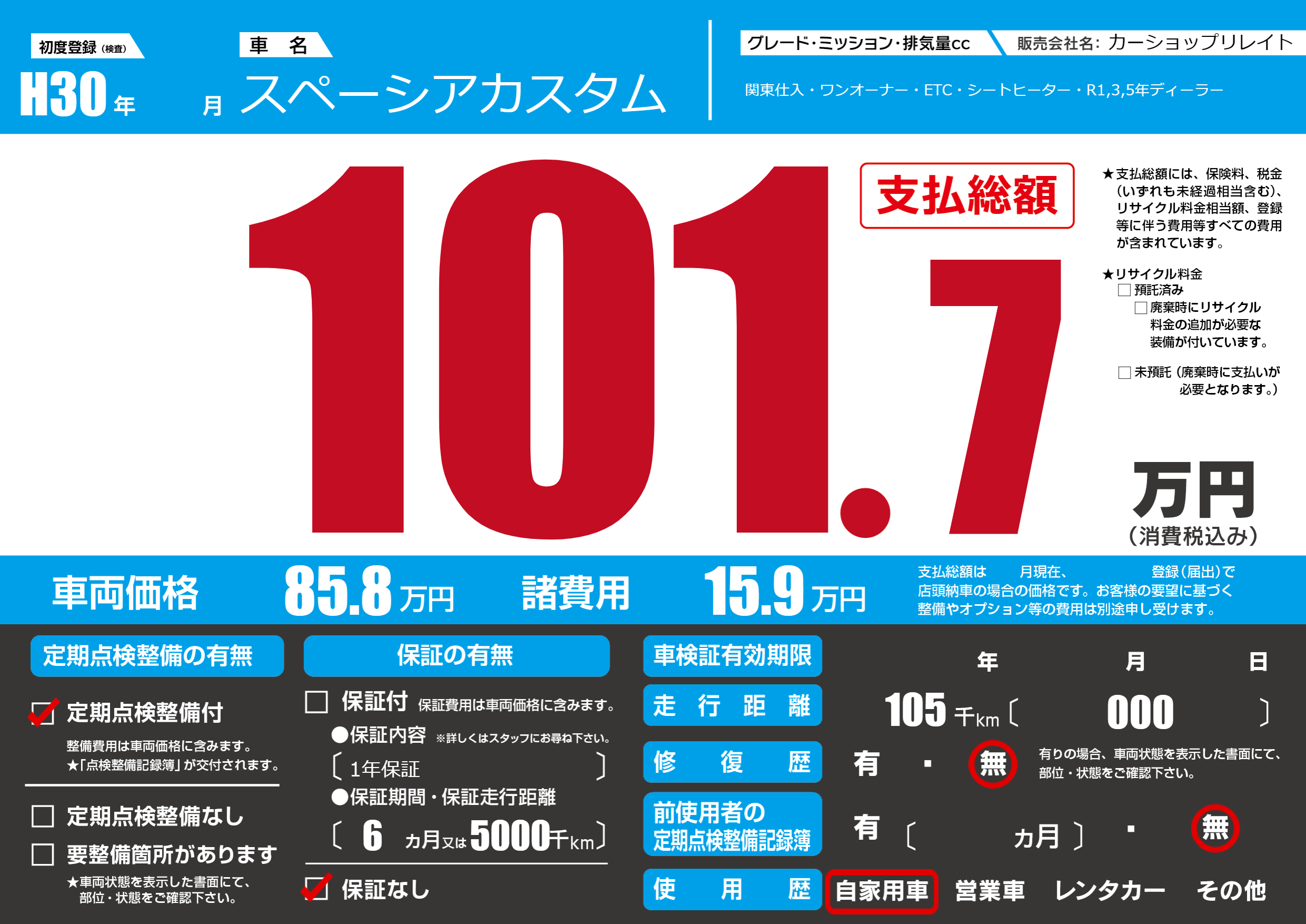 | 初年度登録 | H30年 | ||