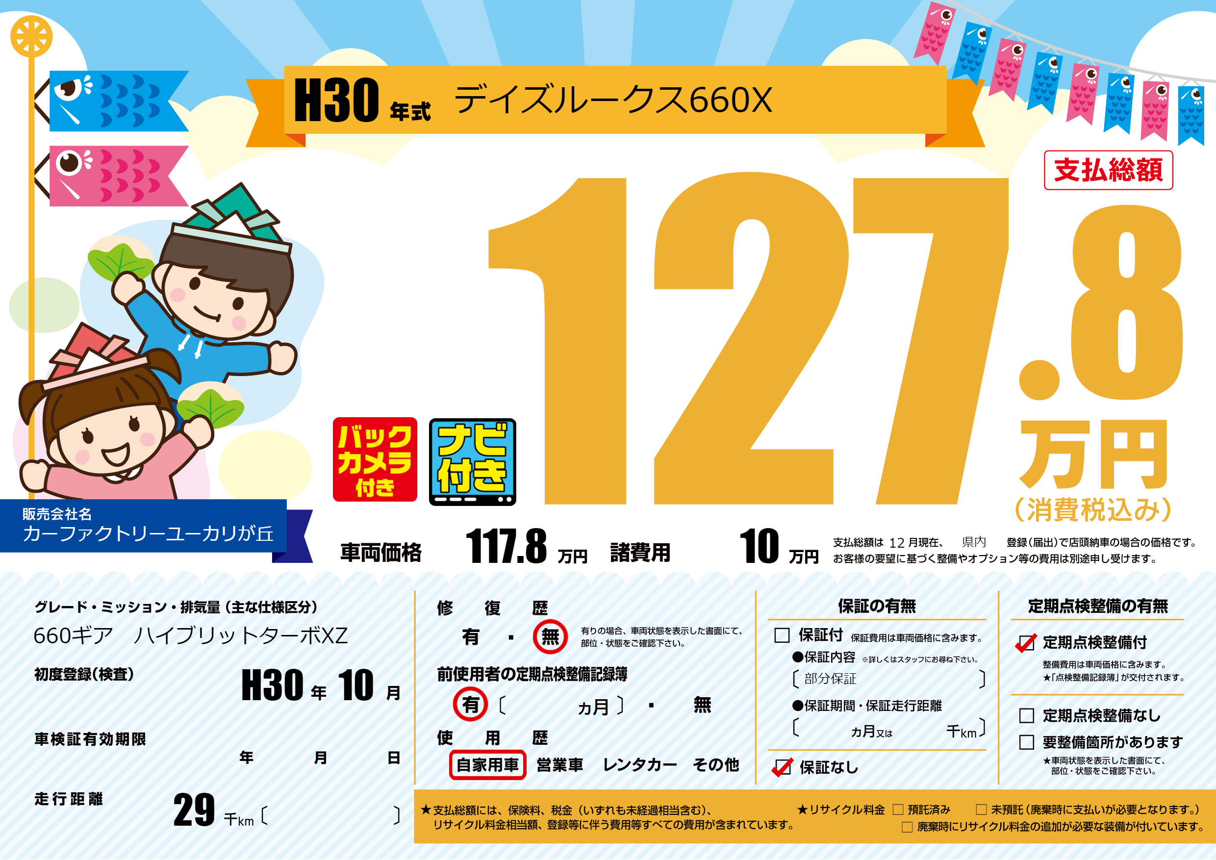 | 車名 | デイズルークス660X | グレード ミッション 排気量 |