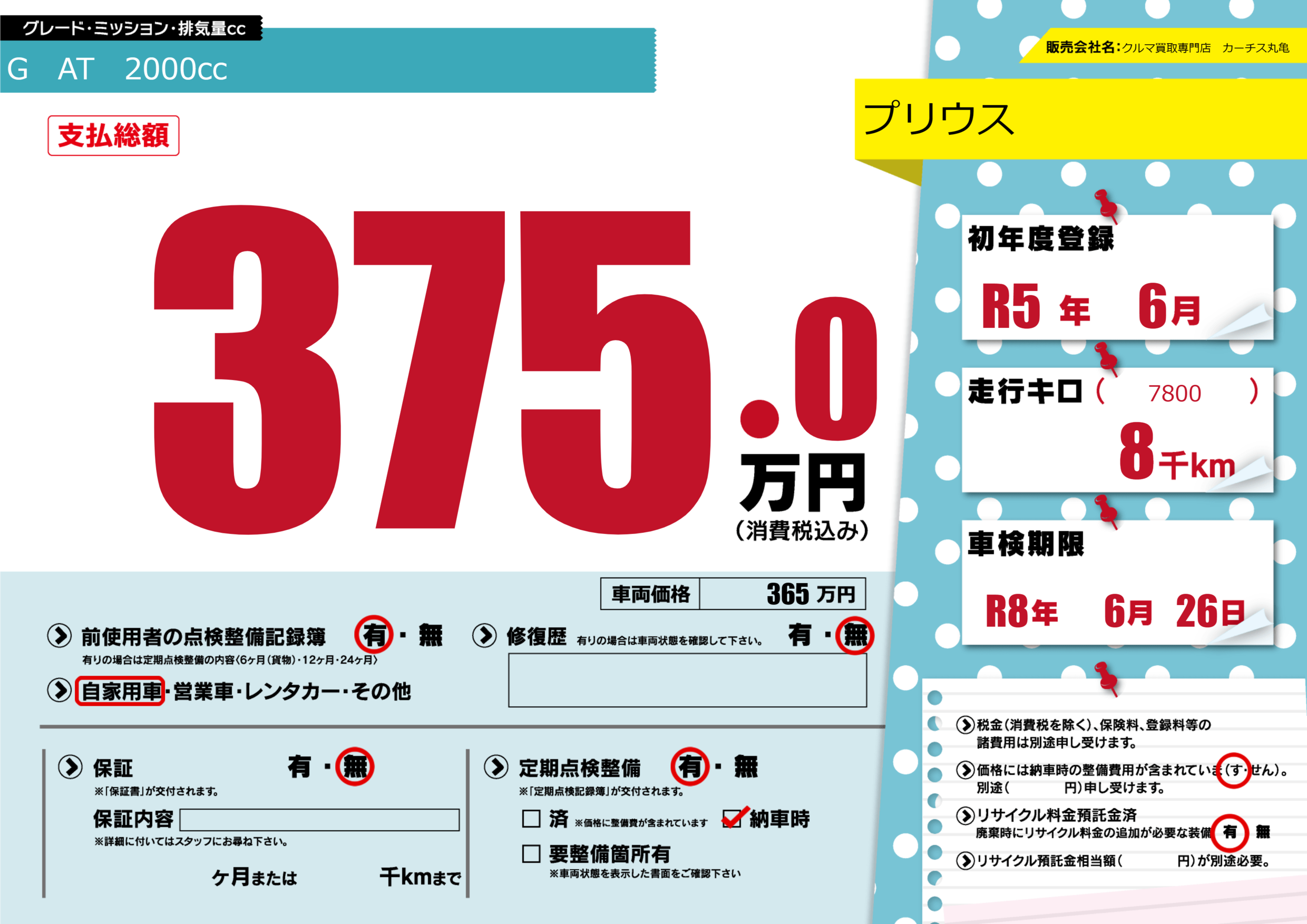 | 車名 | プリウス | グレード ミッション 排気量 |