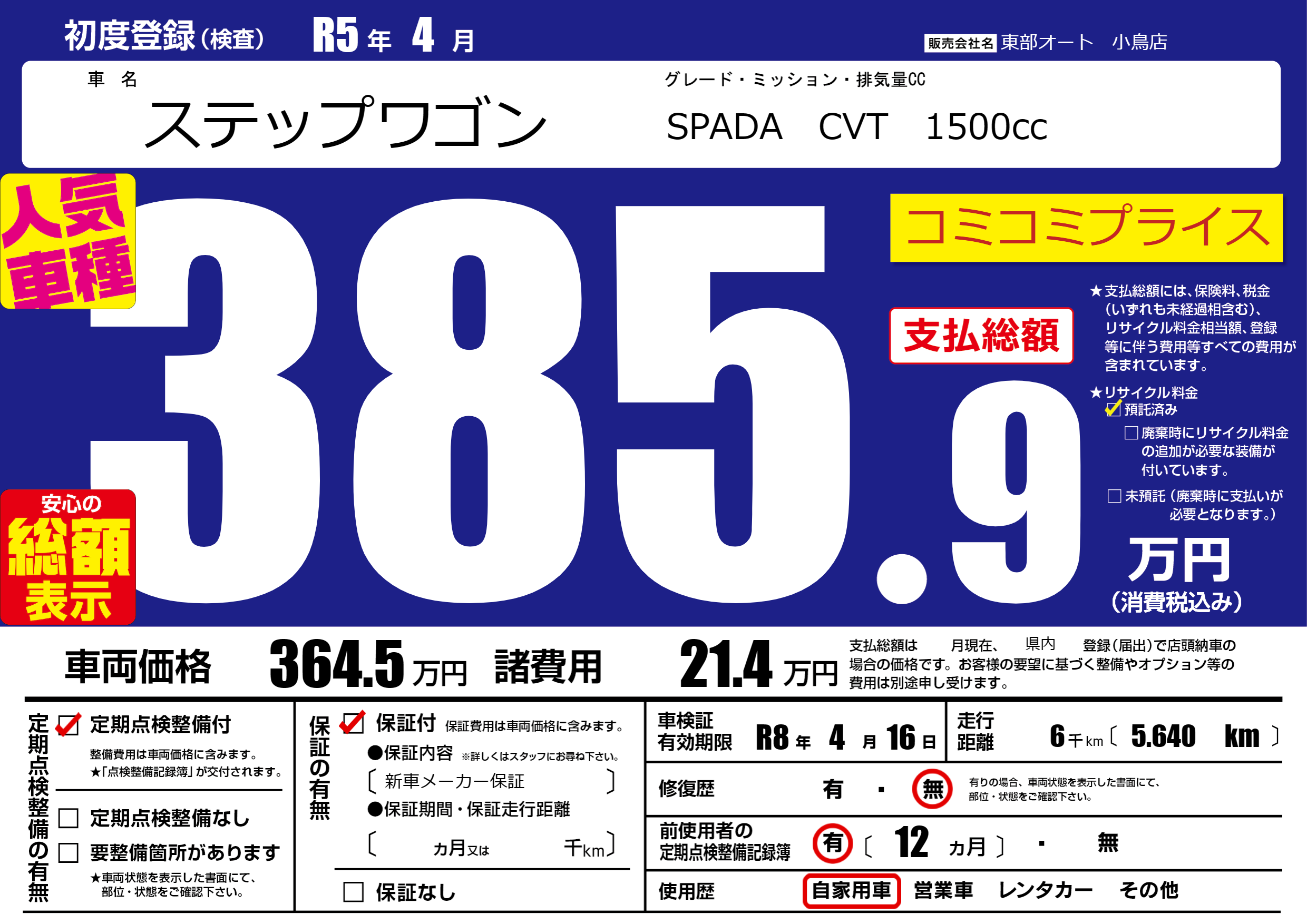 | 車検制限 | R8年 4月 16日 | ||