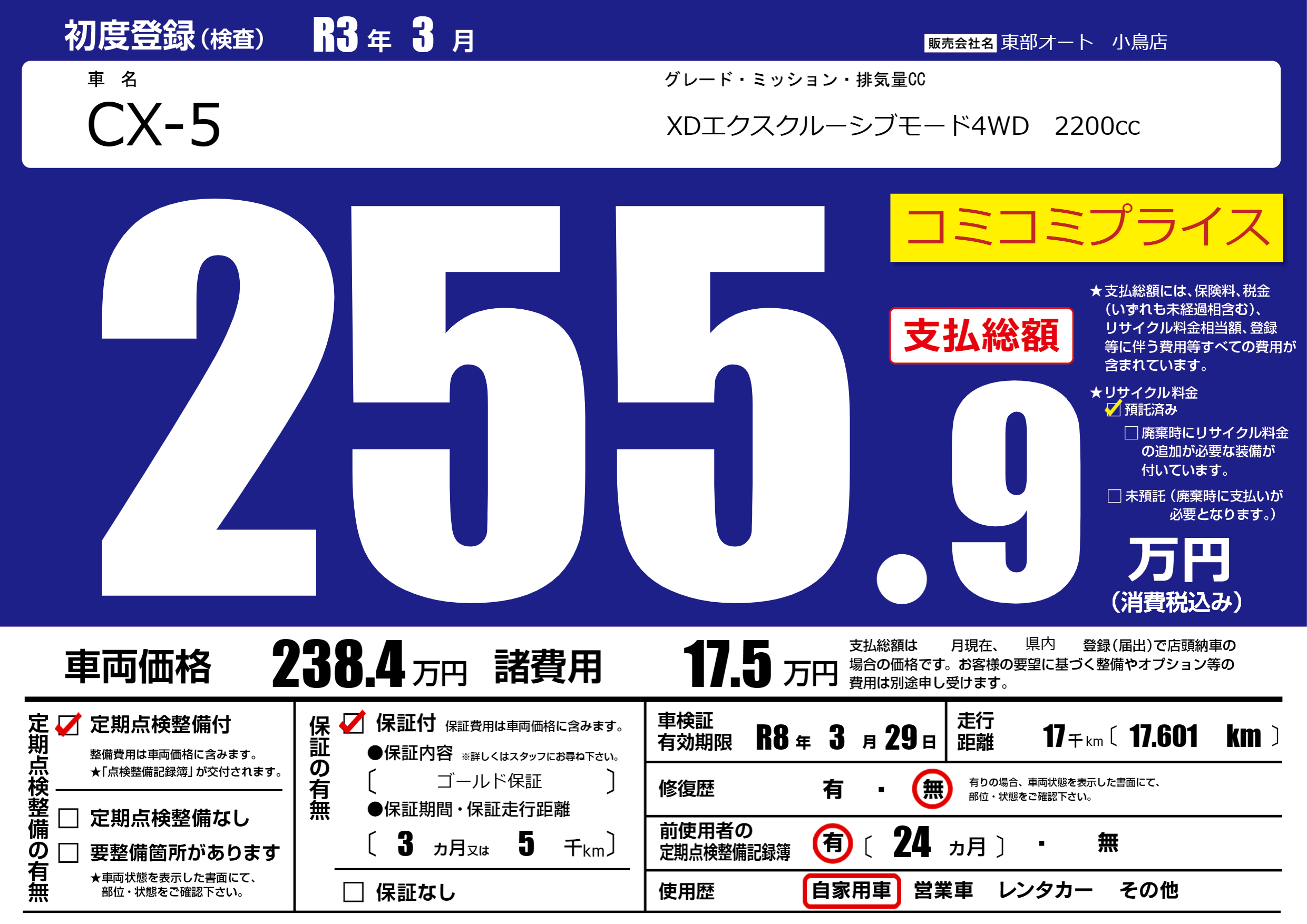 | 車検制限 | R8年 3月 29日 | ||