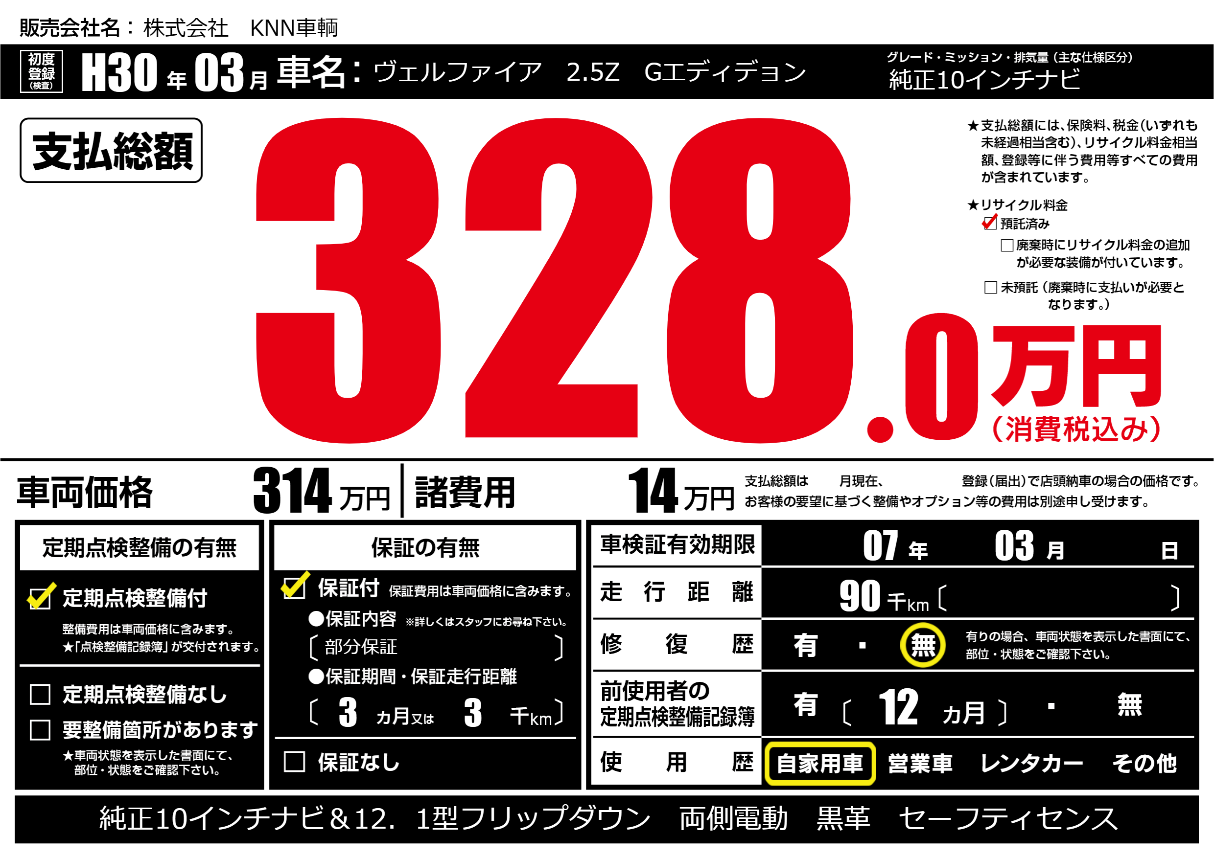 | 走行キロ | 9万km | 初年度登録 | H30年03月 |