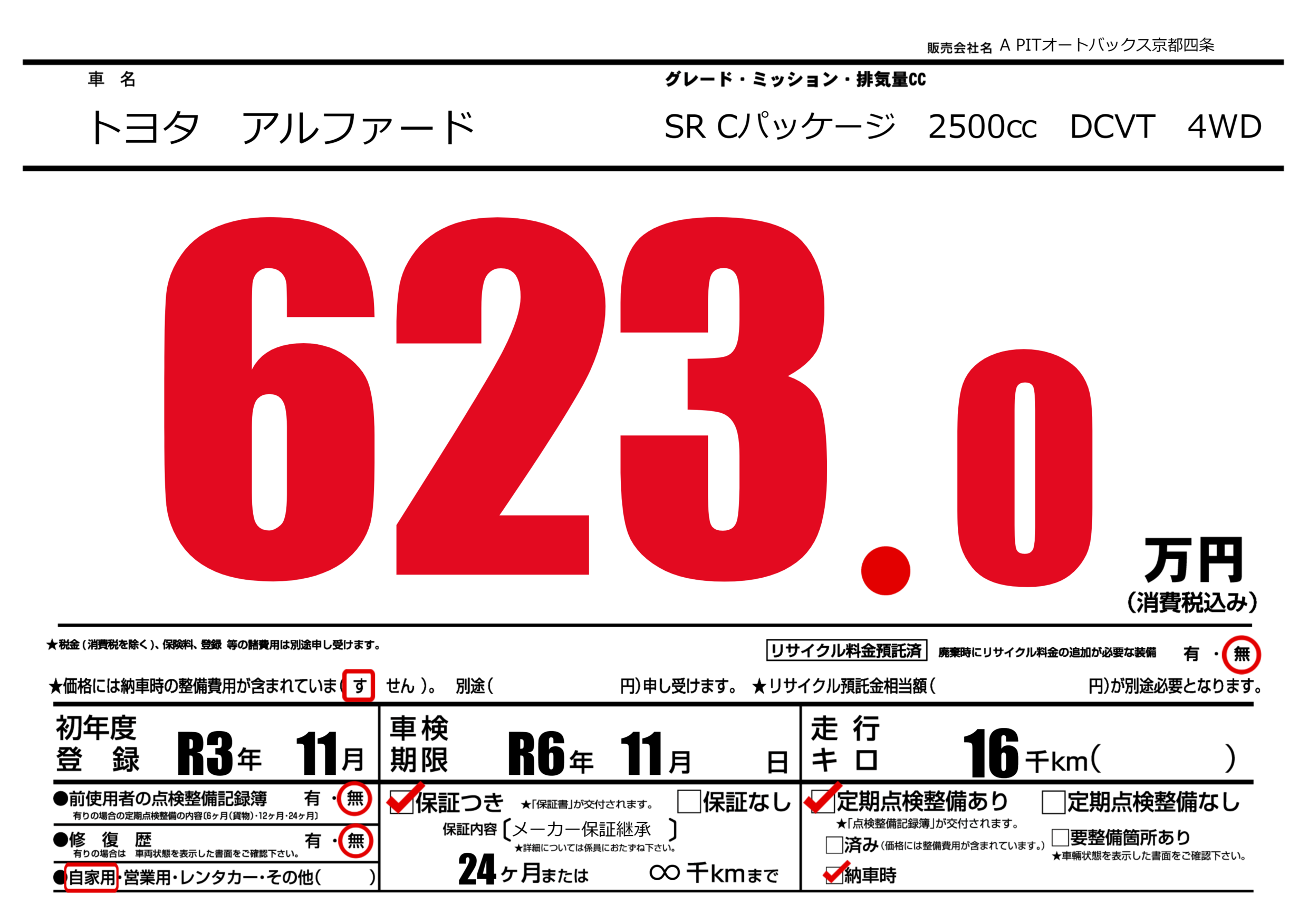 | 車検制限 | R6年 11月 - 日 | ||