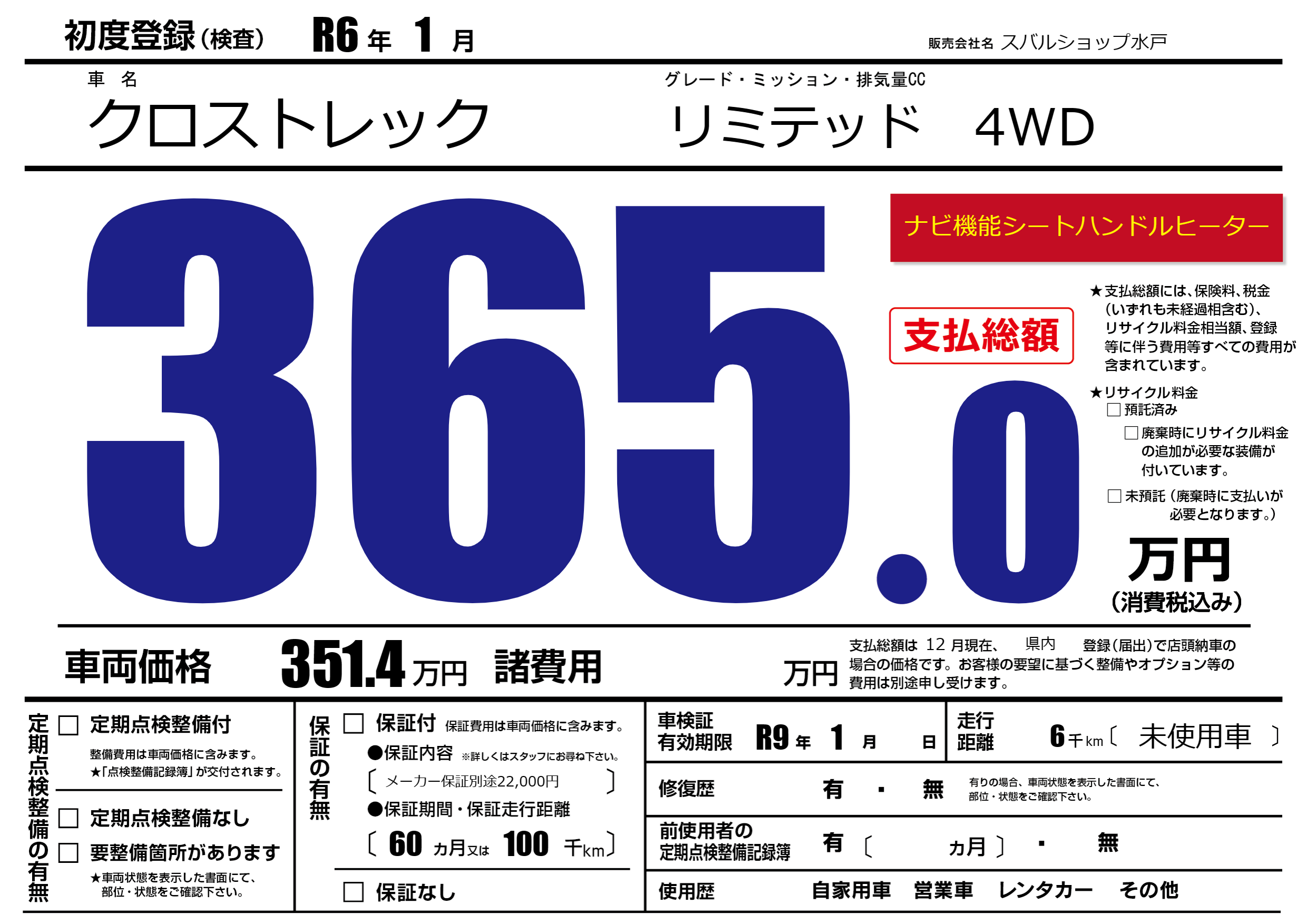 | 車名 | クロストレック | グレード ミッション 排気量 |