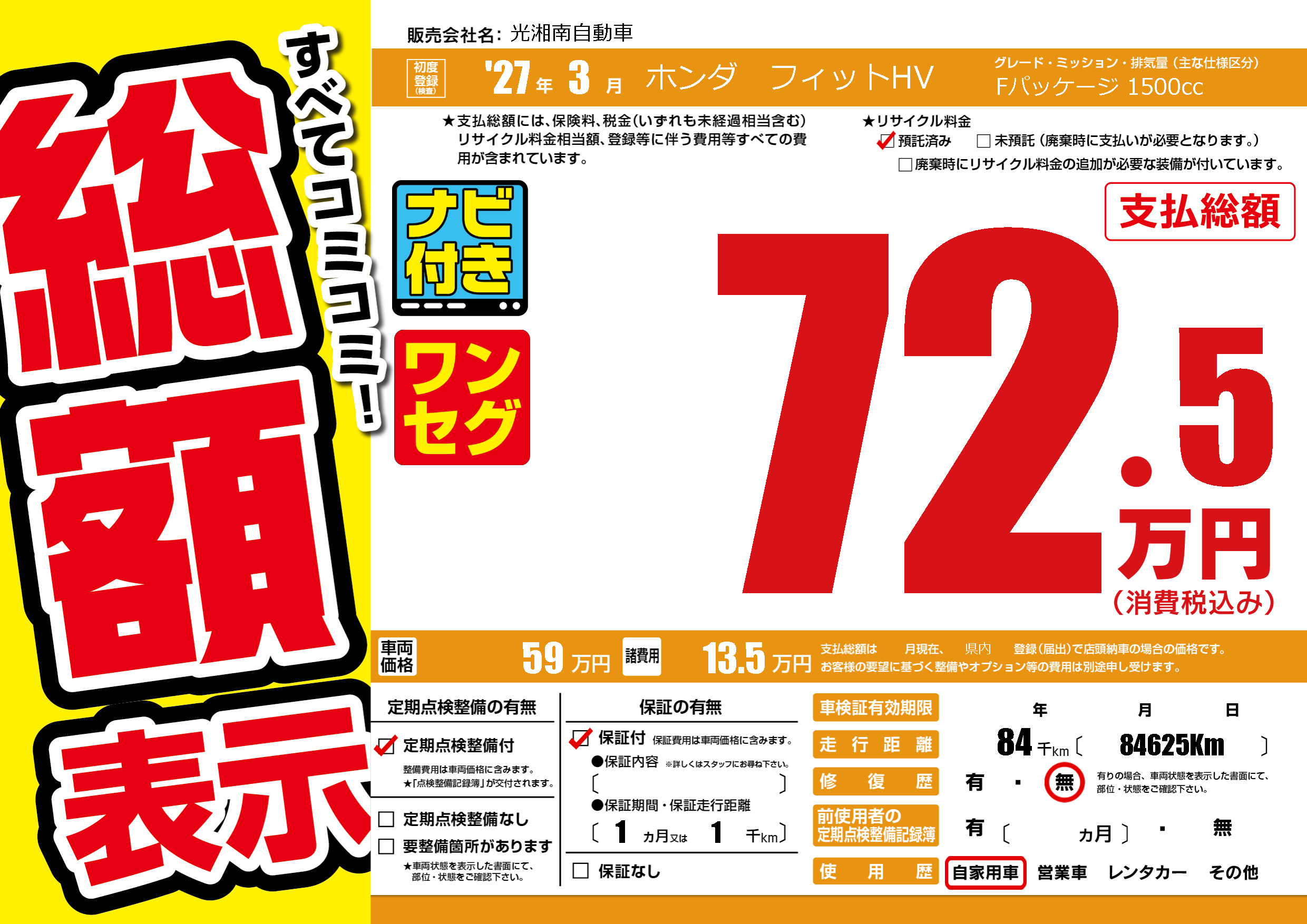 | 走行キロ | 8.4万km | 初年度登録 | '27年3月 |