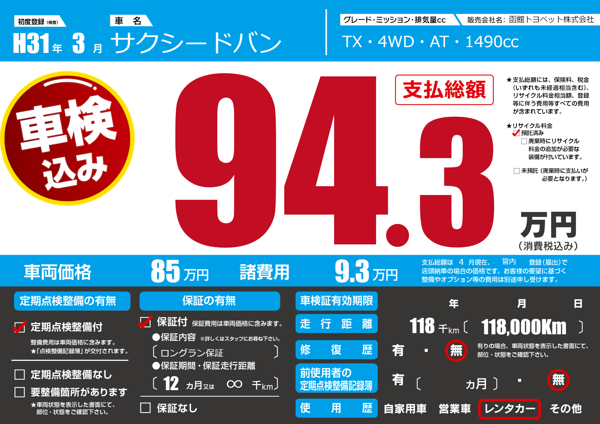 | 定期点検整備 | 定期点検整備あり | ||