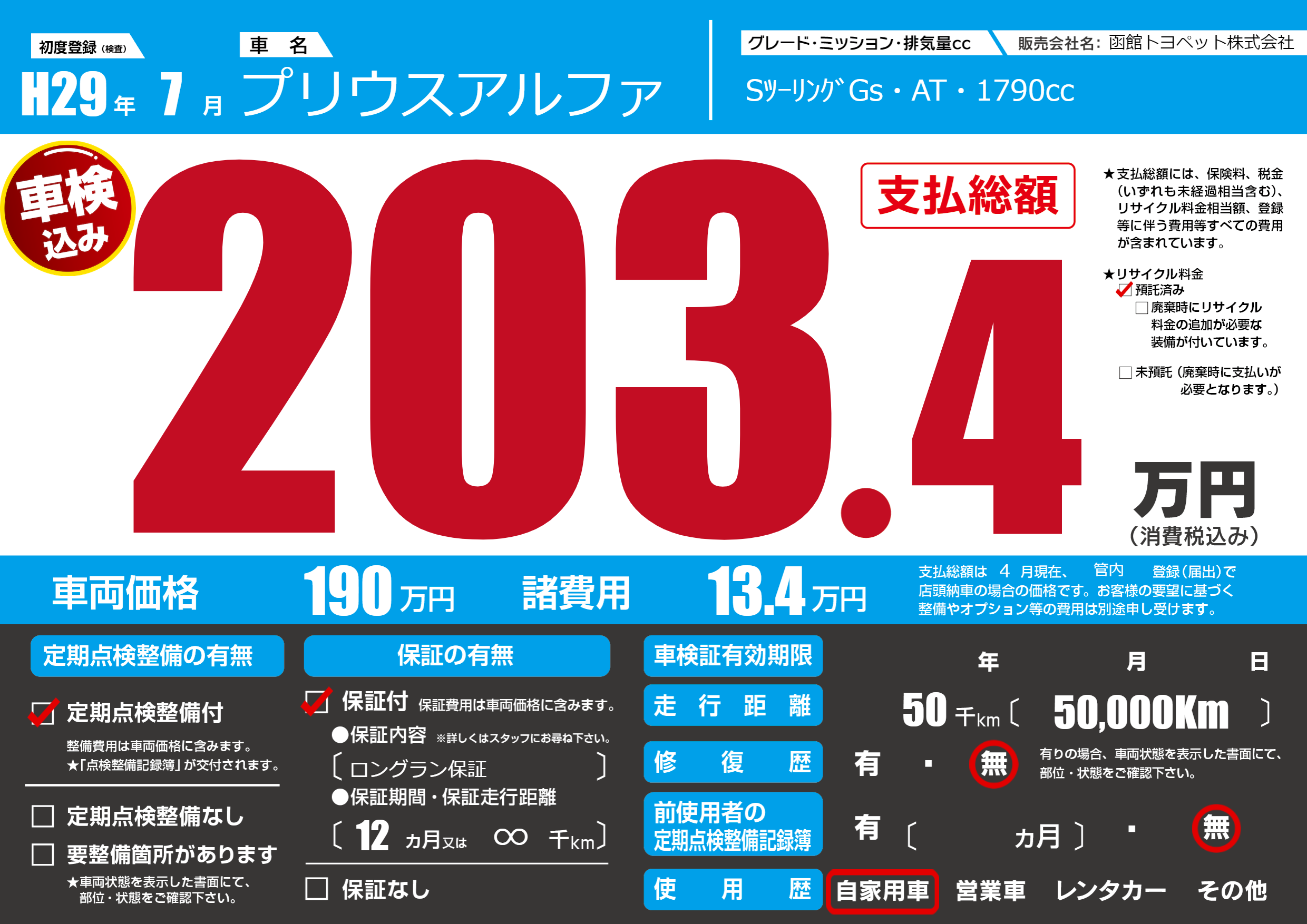 | 走行キロ | 5万km | ||