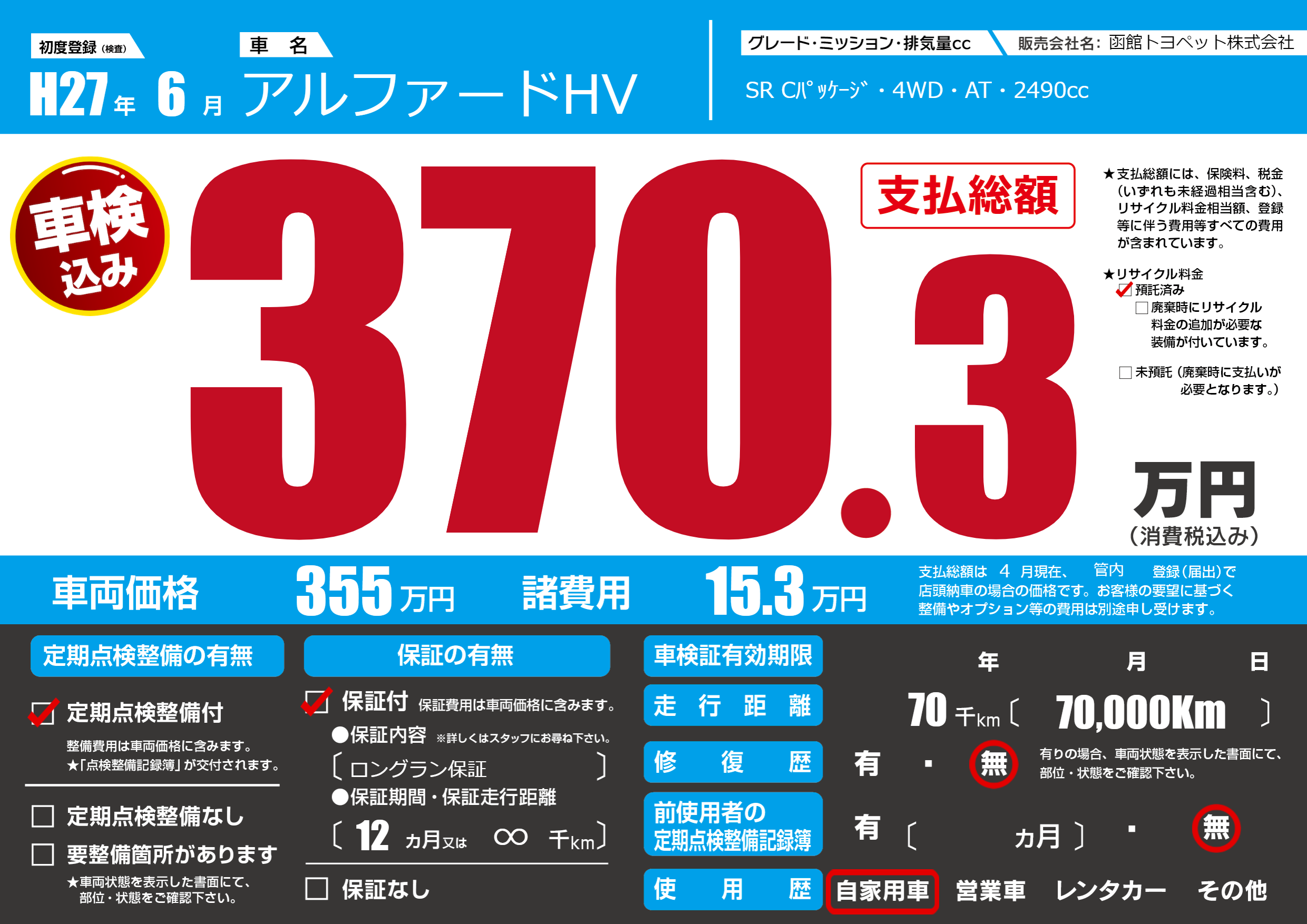 | 定期点検整備 | 定期点検整備あり | ||