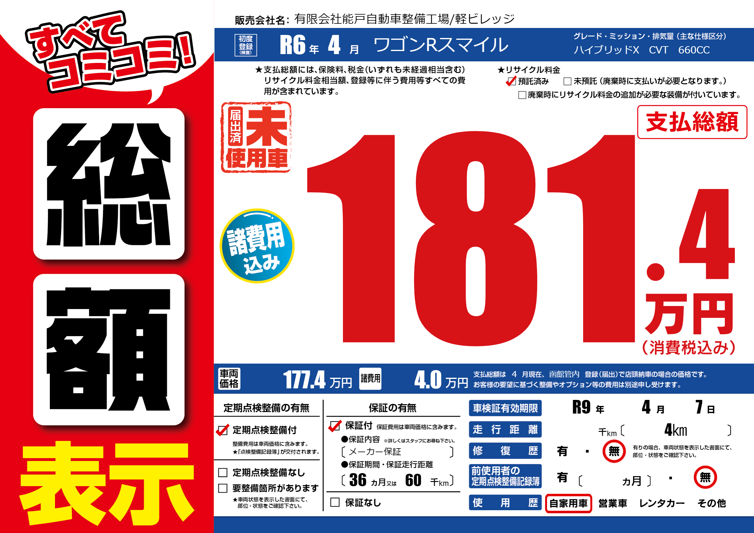 | 走行キロ | - | 初年度登録 | R6年4月 |