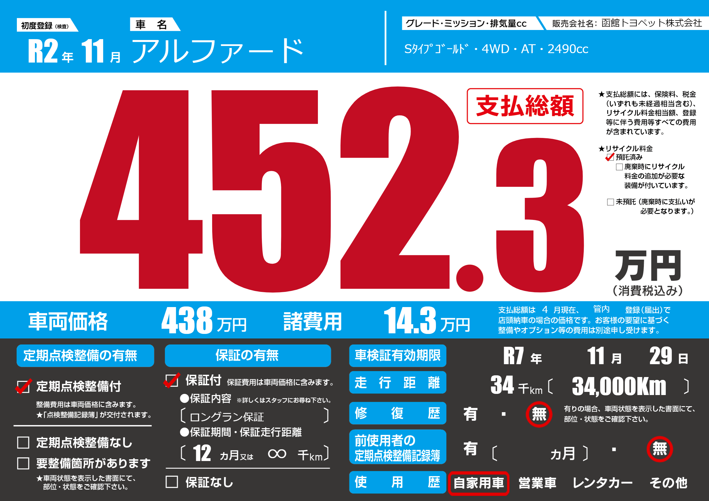 | 車検制限 | R7年 11月 29日 | ||