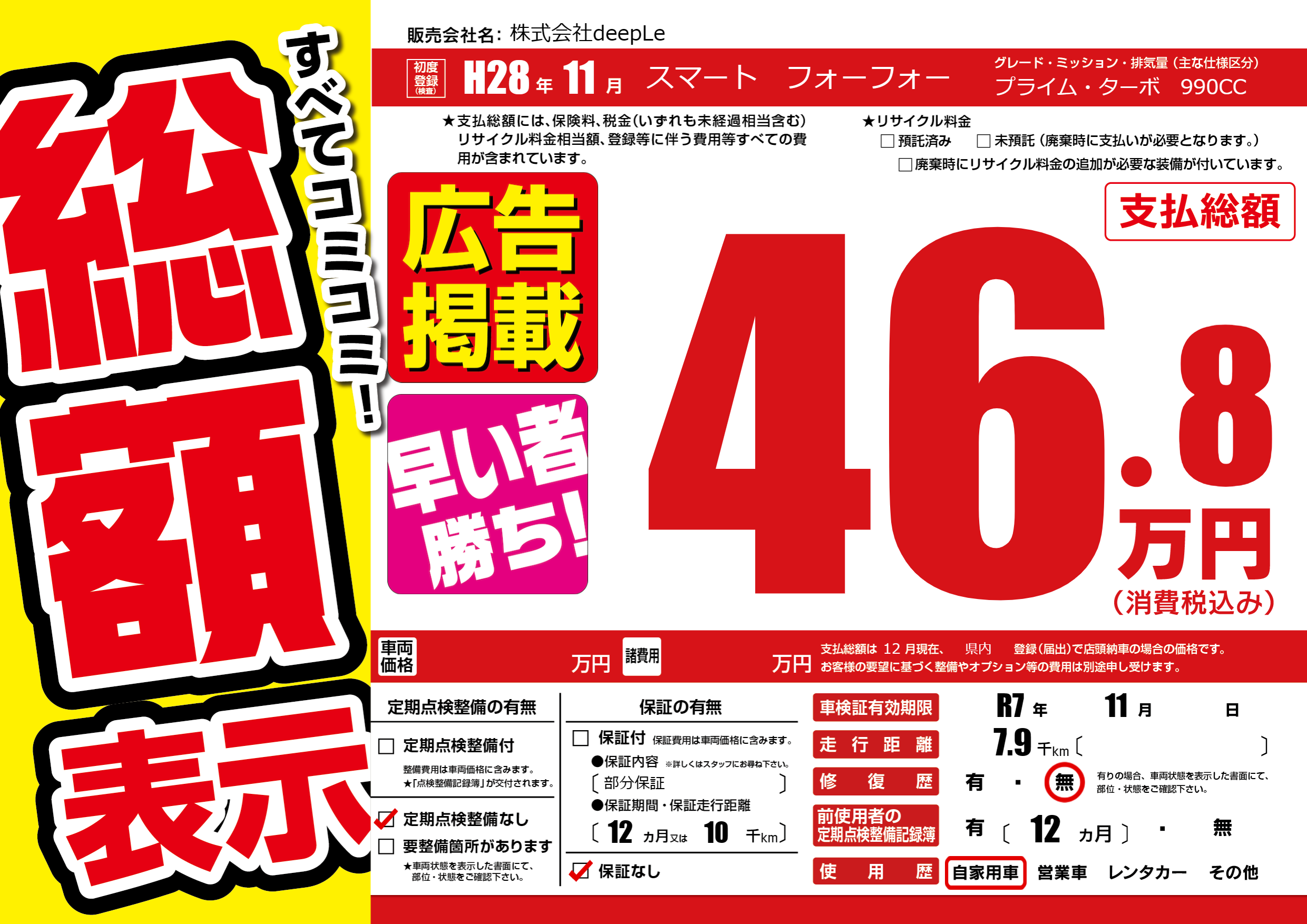 | 車検制限 | R7年 11月 - 日 | ||
