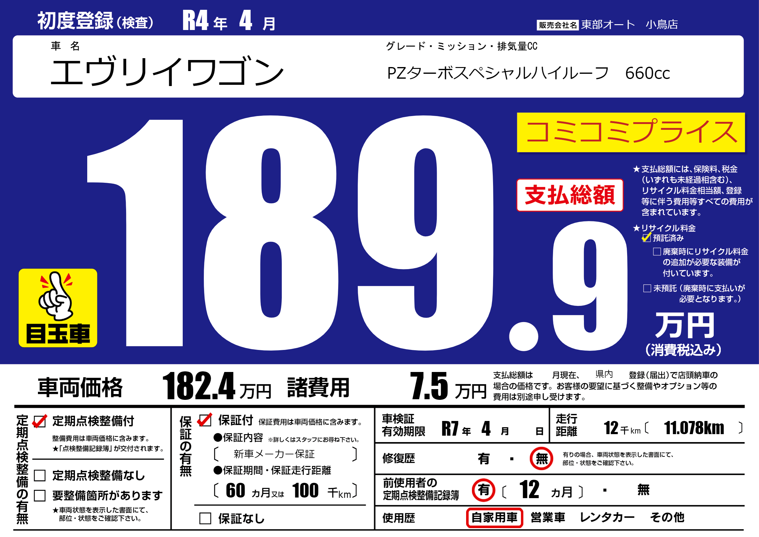 なし | 車検制限 | R7年4月---月 |