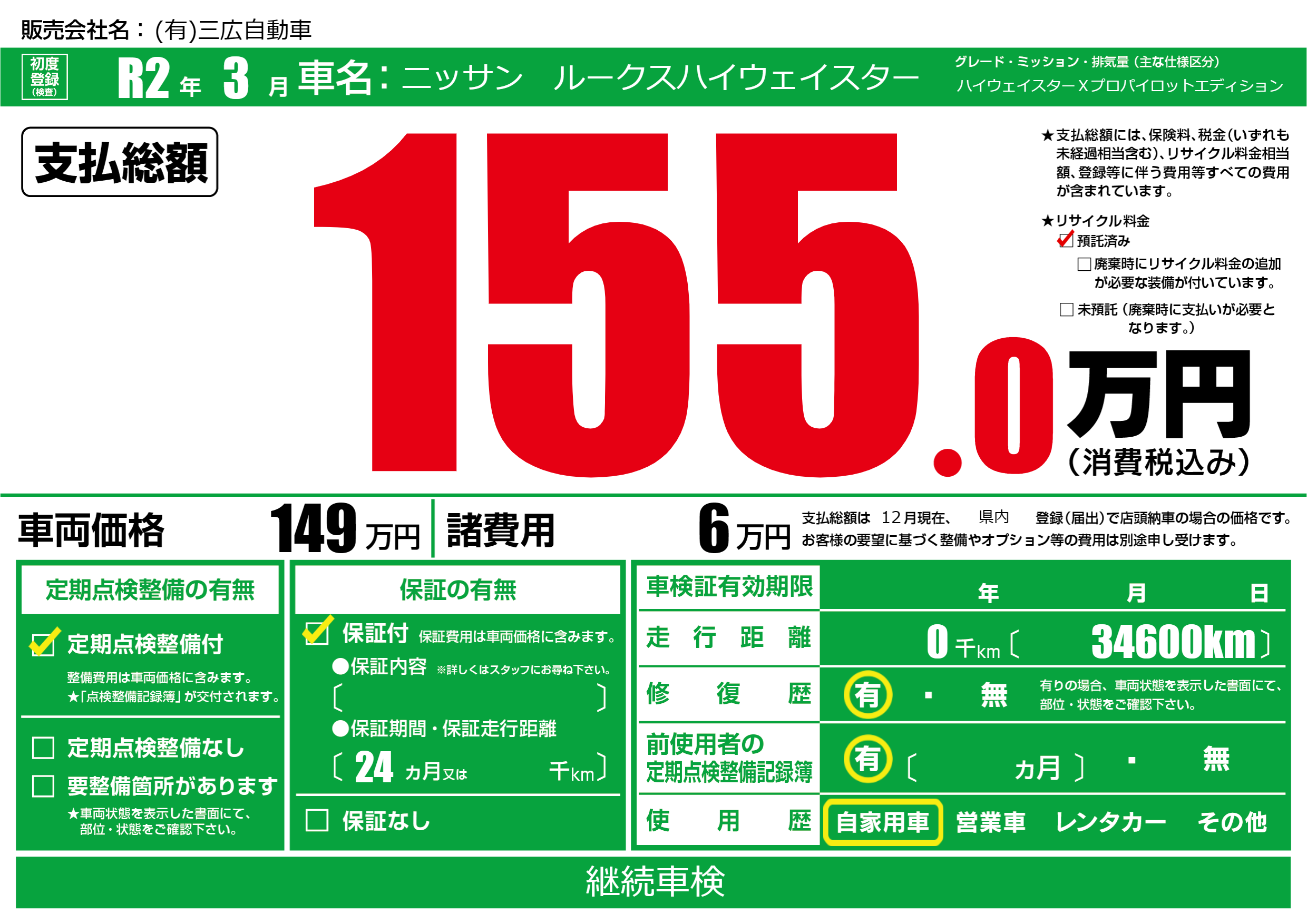 | 走行キロ | - | 初年度登録 | R2年3月 |