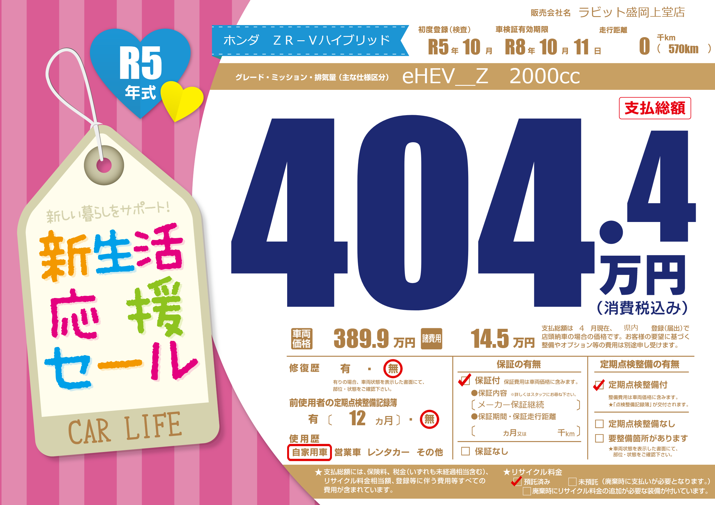 | リサイクル料金 預託済 |