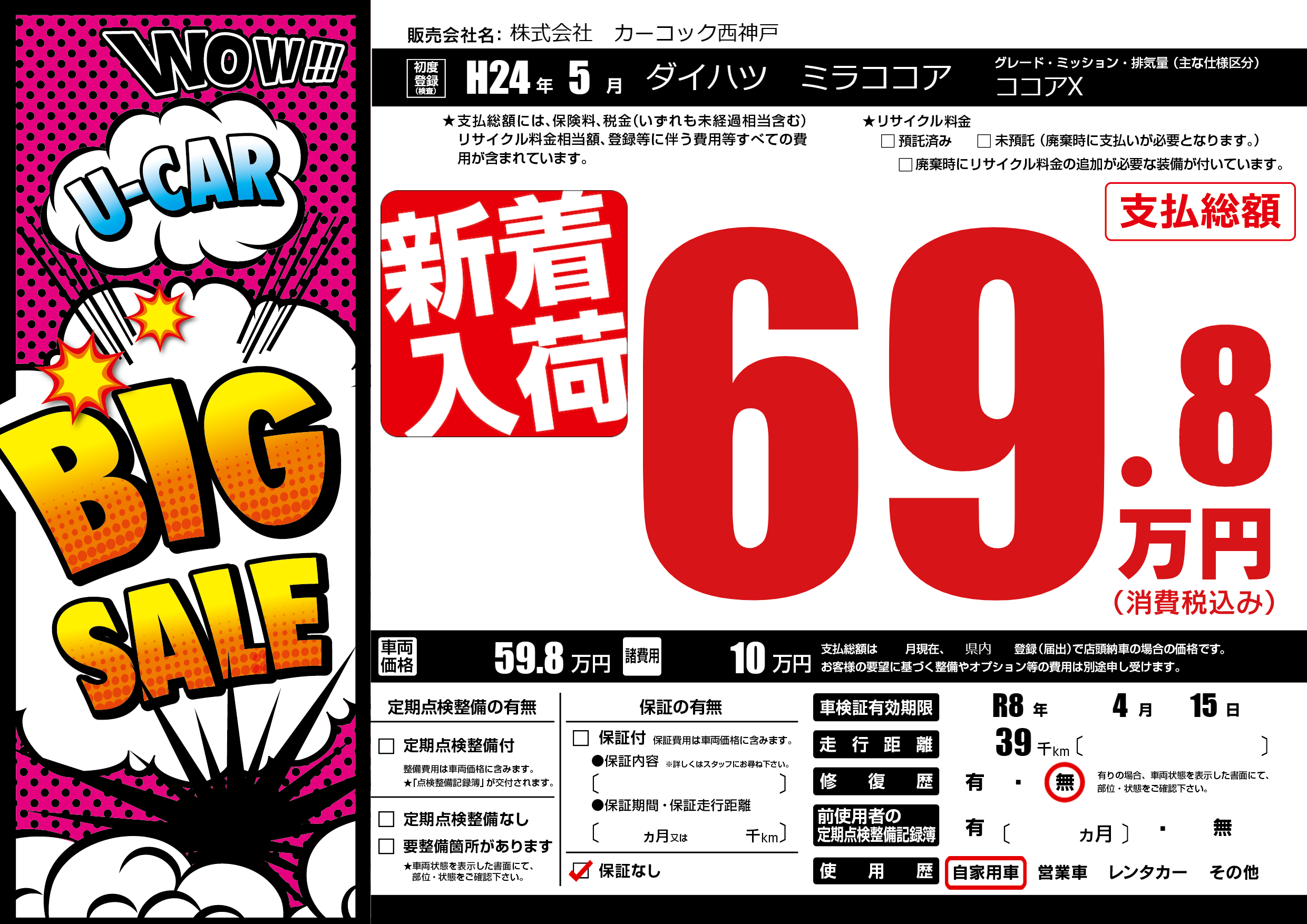 なし | 車検制限 | R8年4月15月 |