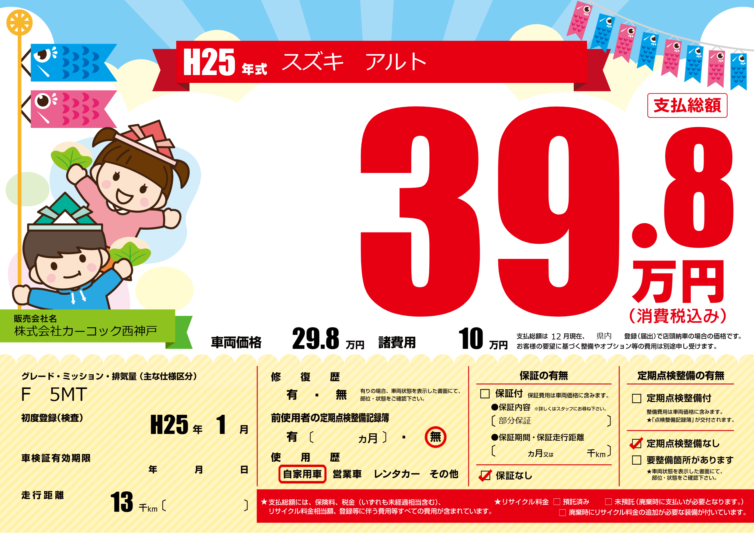| 車名 | スズキ アルト | グレード ミッション 排気量 |