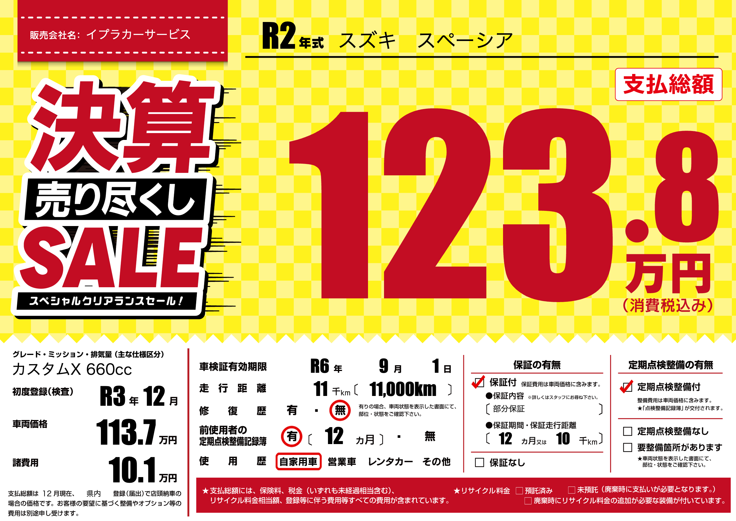| 走行キロ | 1.1万km | 初年度登録 | R3年12月 |