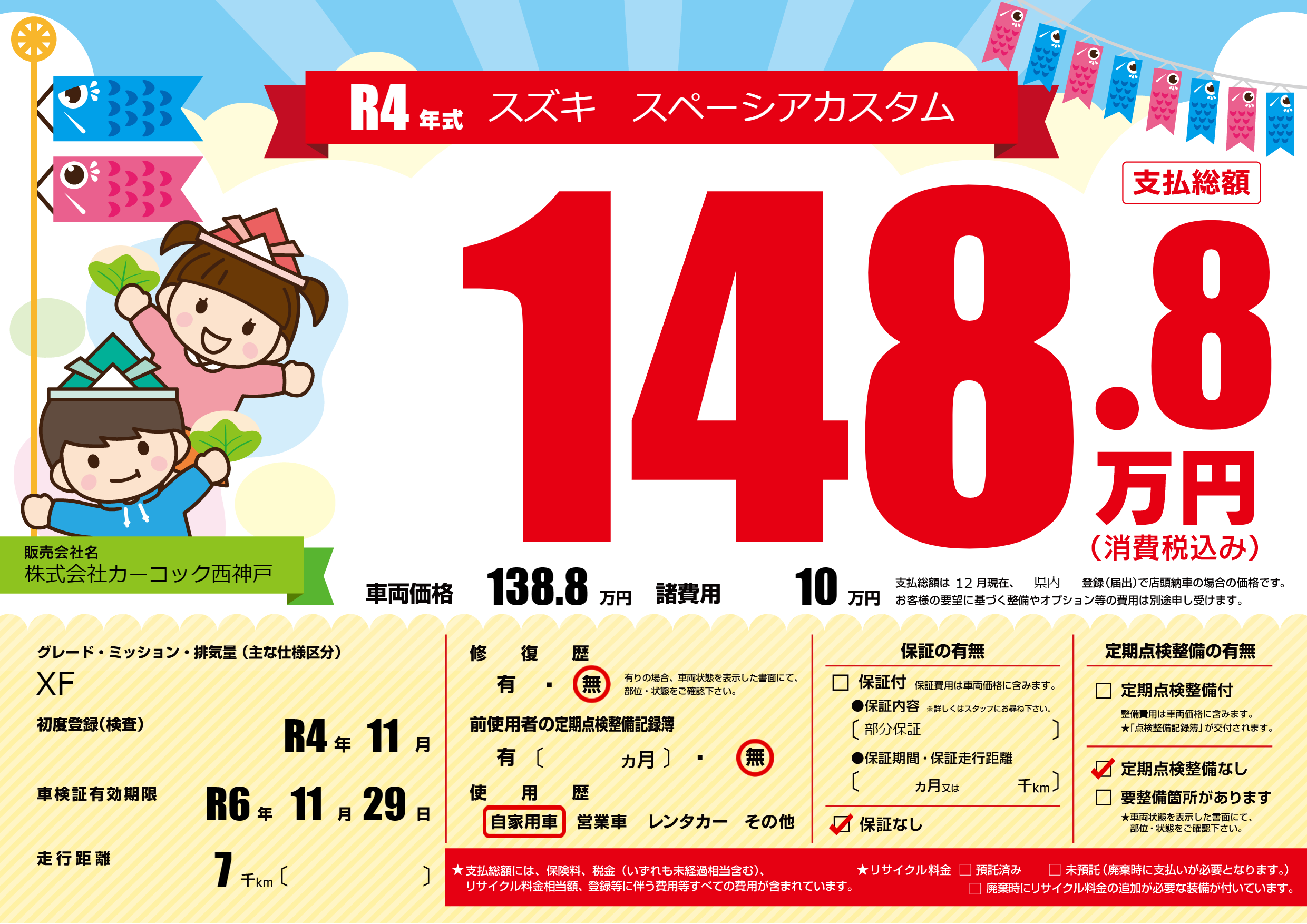 | 走行キロ | 0.7万km | 初年度登録 | R4年11月 |