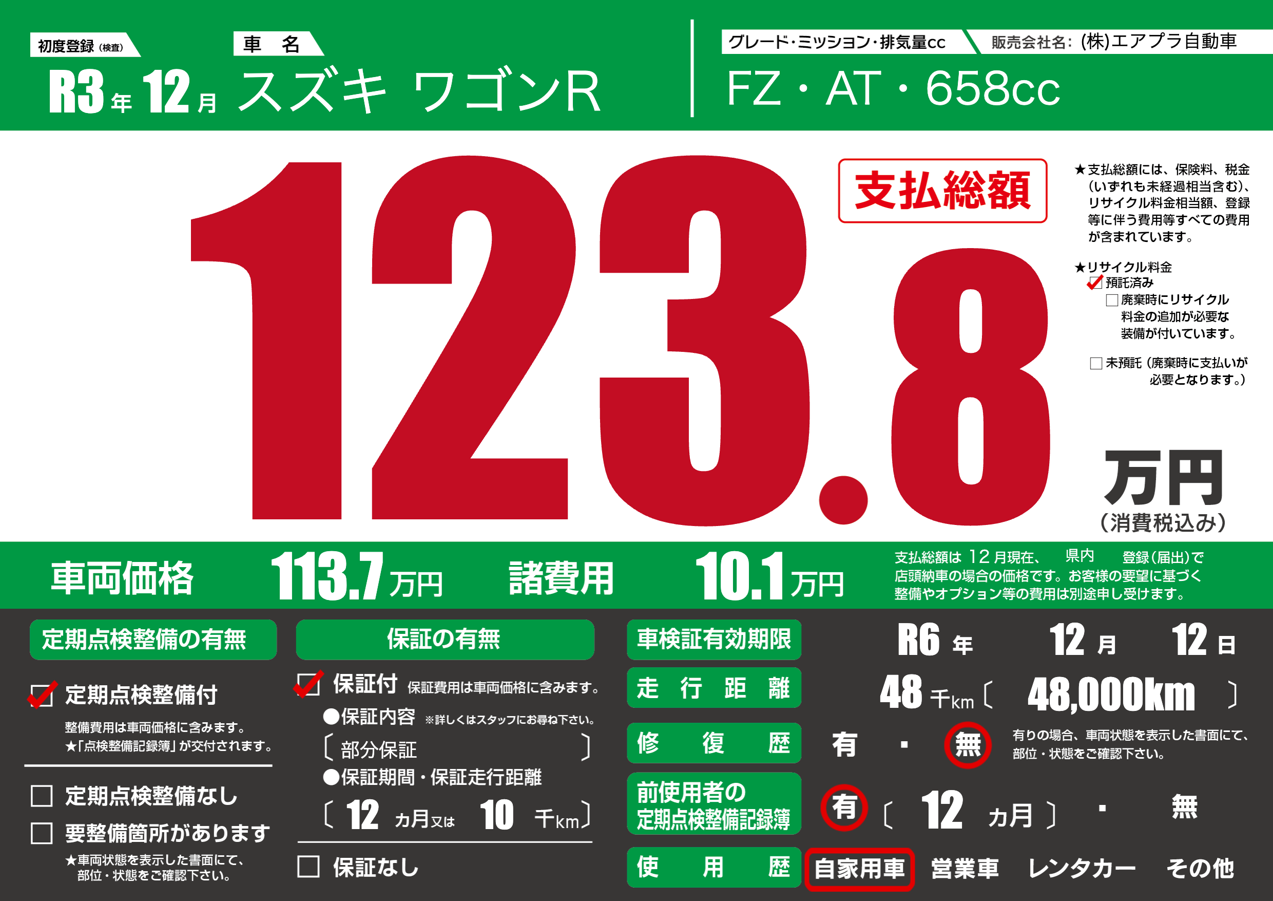 なし | 車検制限 | R6年12月12月 |