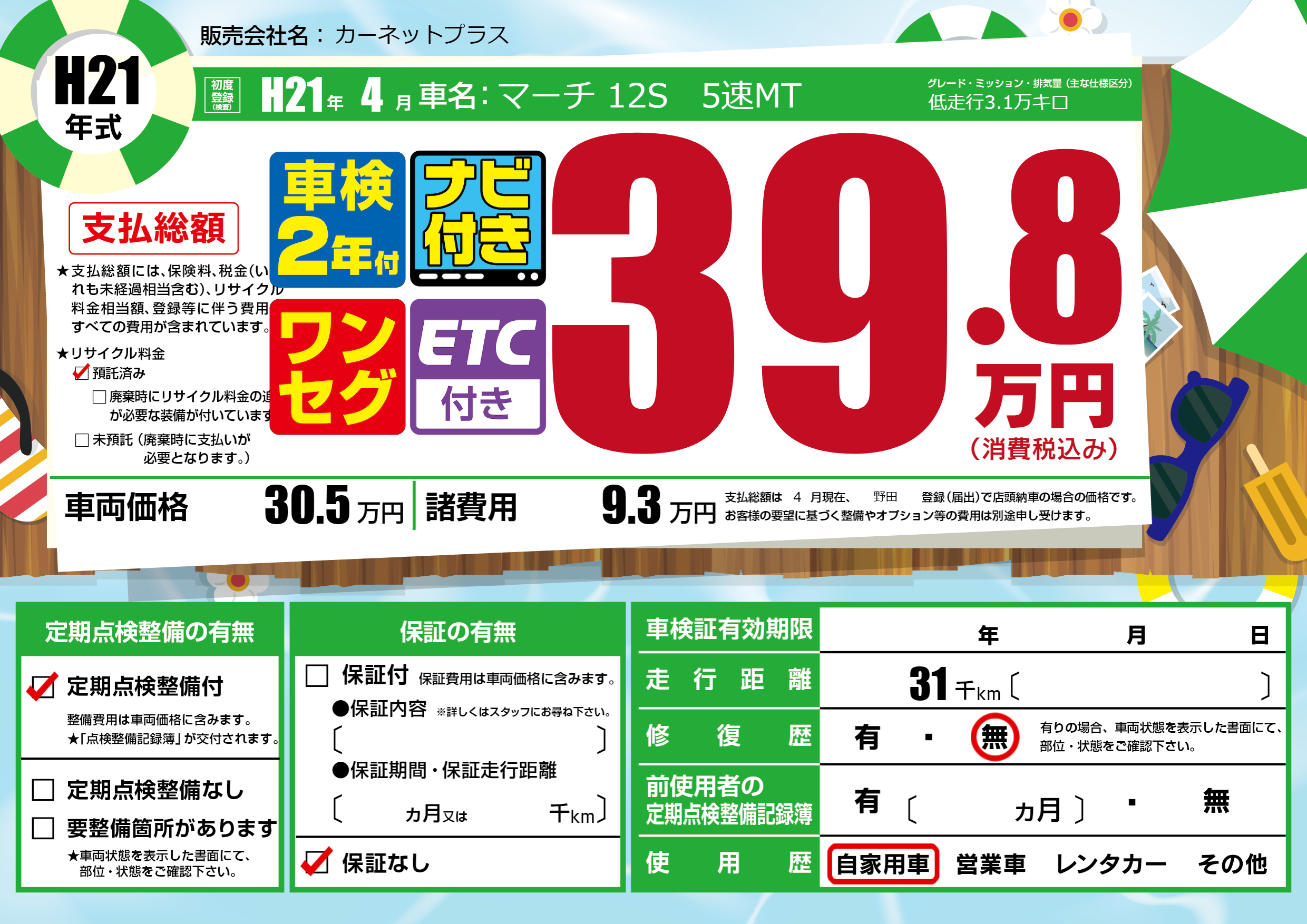 | 車名 | マーチ 12S 5速MT | グレード ミッション 排気量 |
