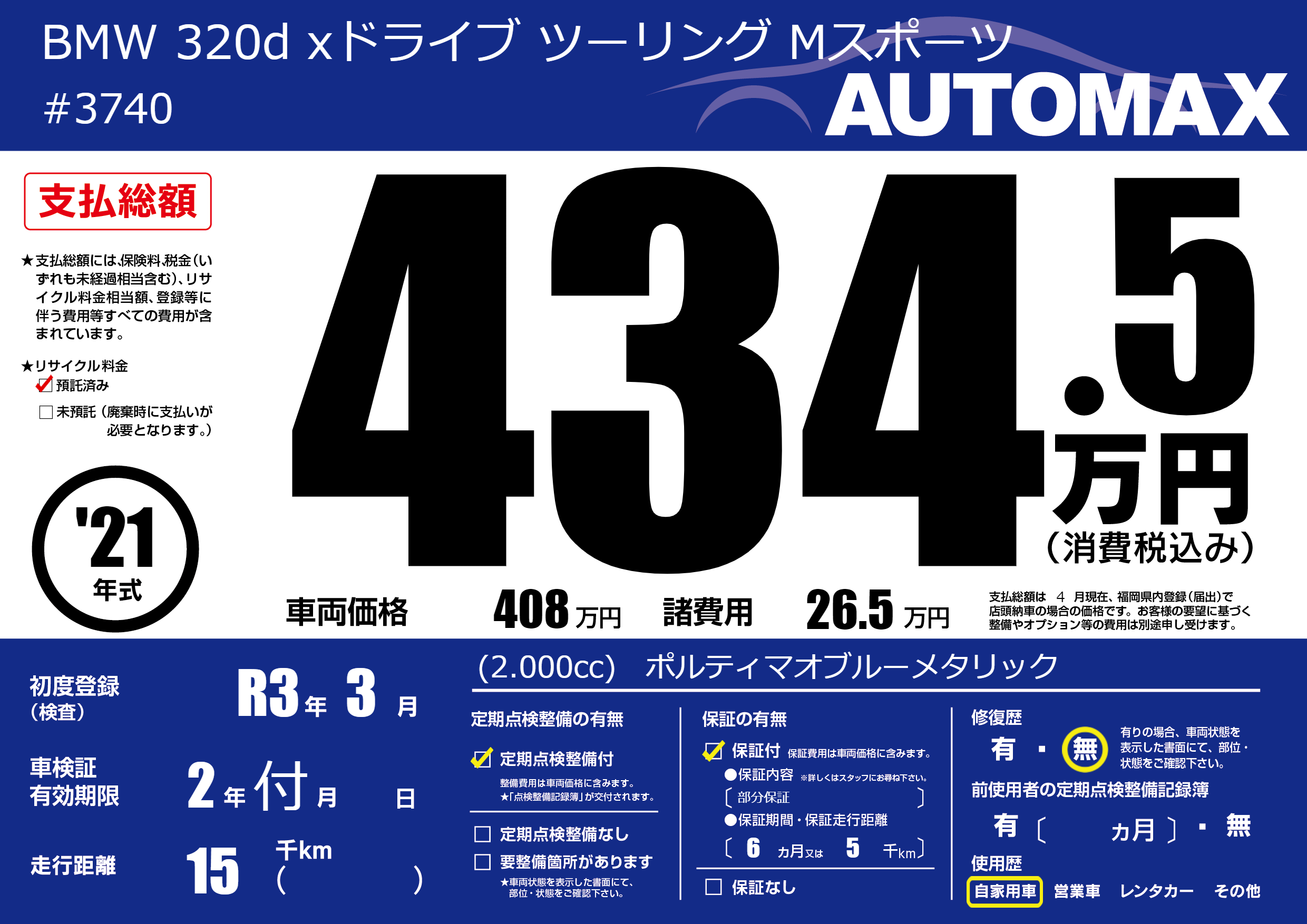 | 定期点検整備 | 定期点検整備あり | ||