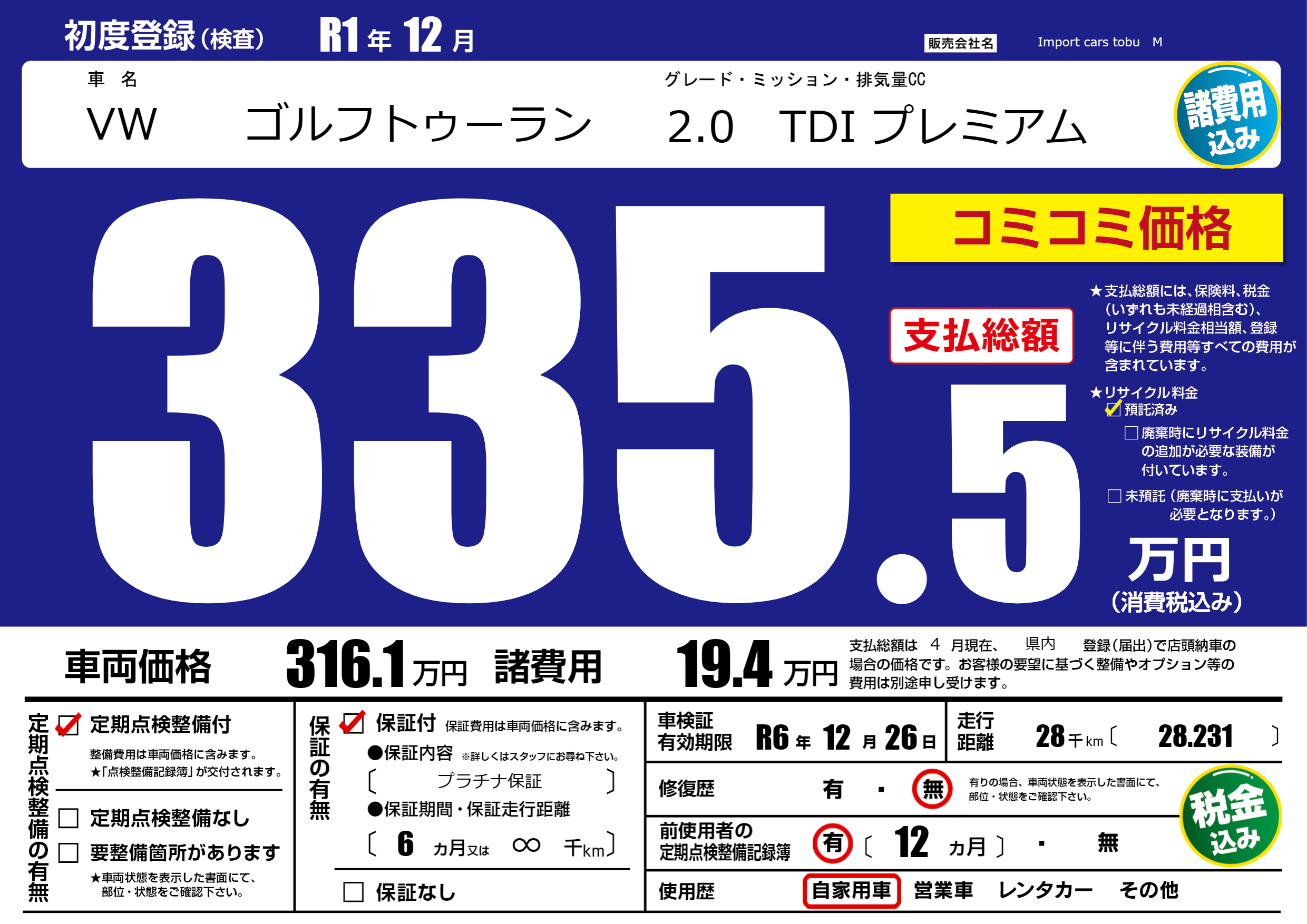 | 定期点検整備 | 定期点検整備あり | ||