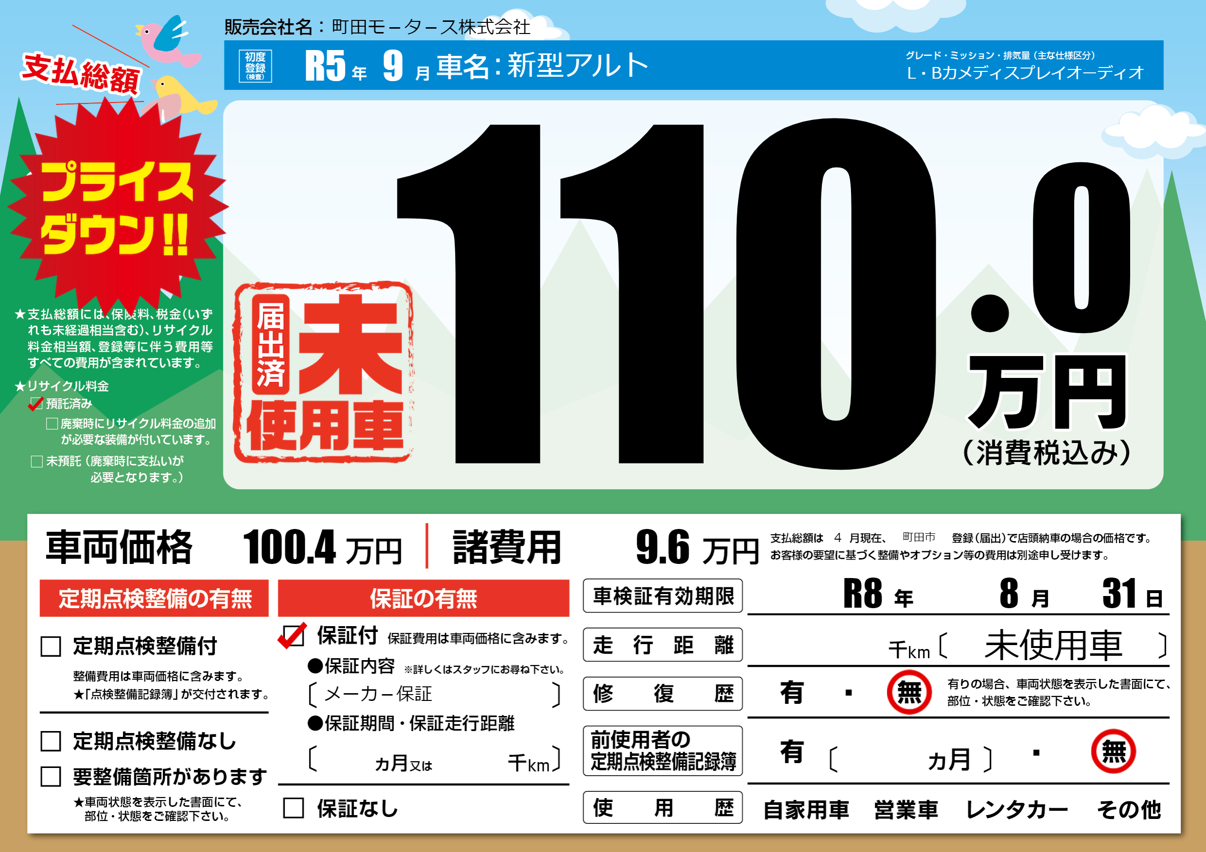 | 車名 | 新型アルト | グレード ミッション 排気量 |