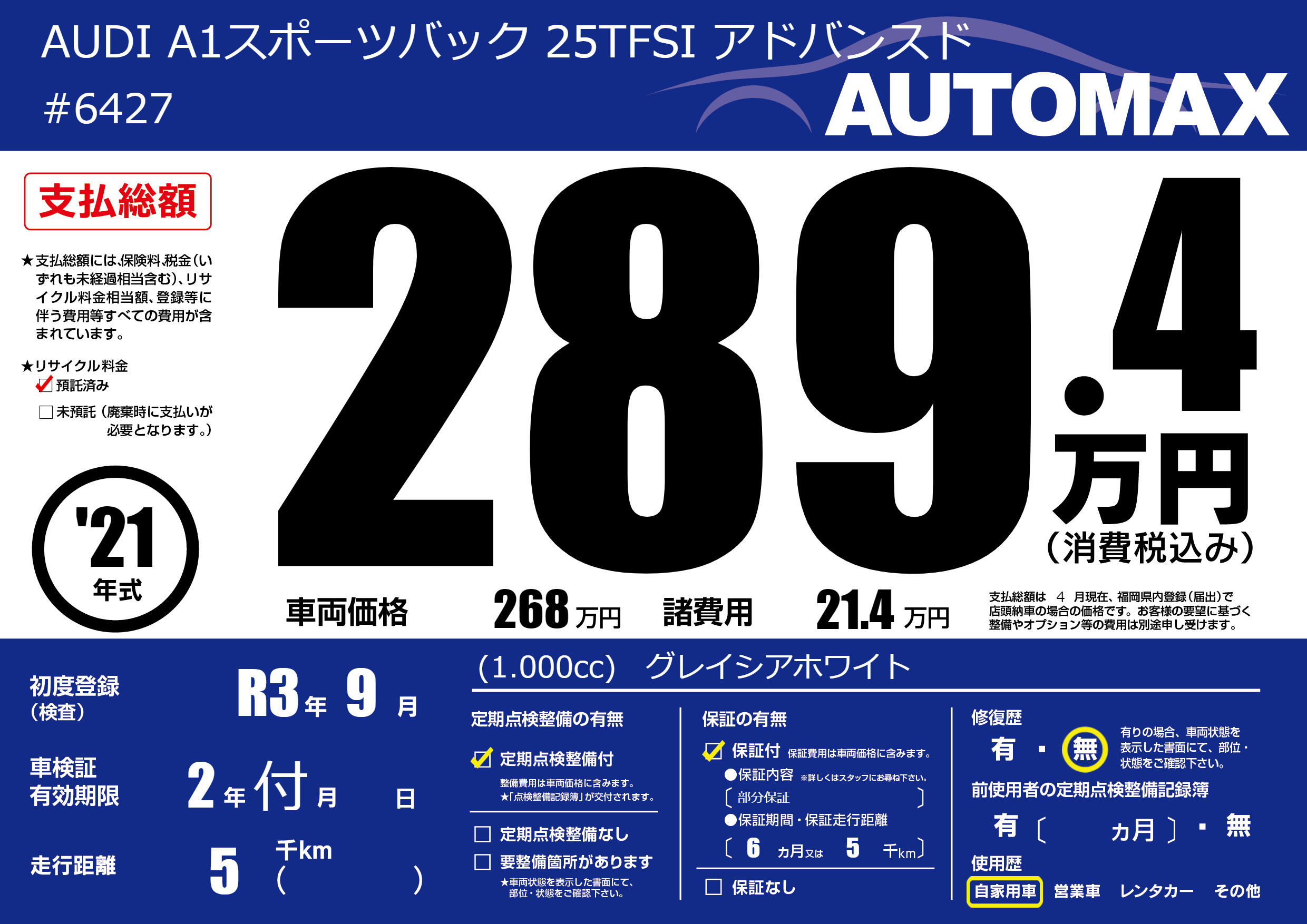 保証付き 保証内容(部分保証) 6ヶ月または(5)千kmまで |