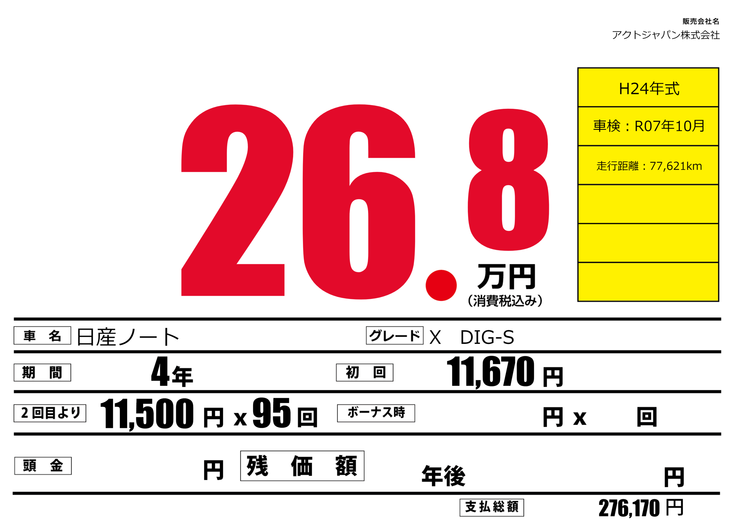 | 車名 | 日産ノート | グレード ミッション 排気量 |
