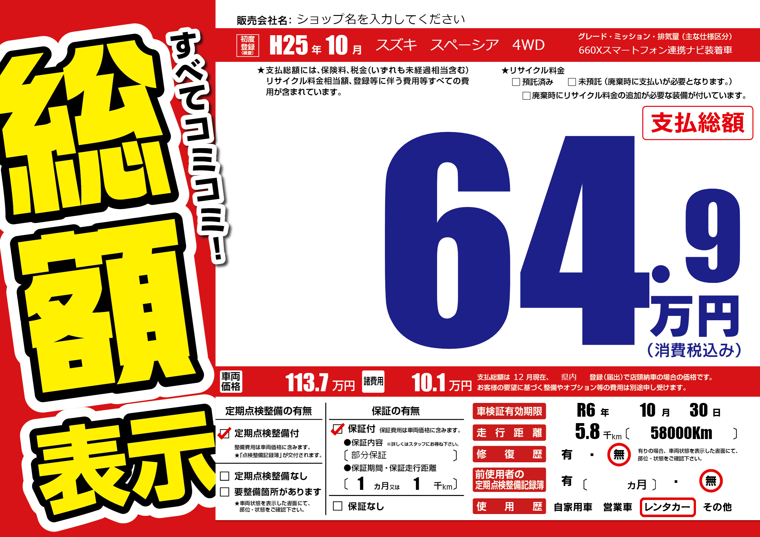 なし | 車検制限 | R6年10月30月 |