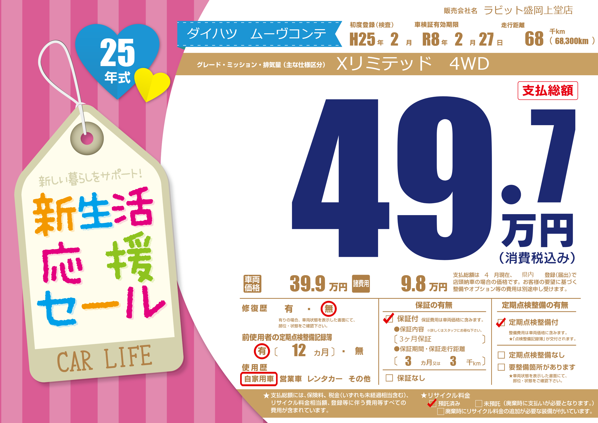 | 定期点検整備 | 定期点検整備あり | ||