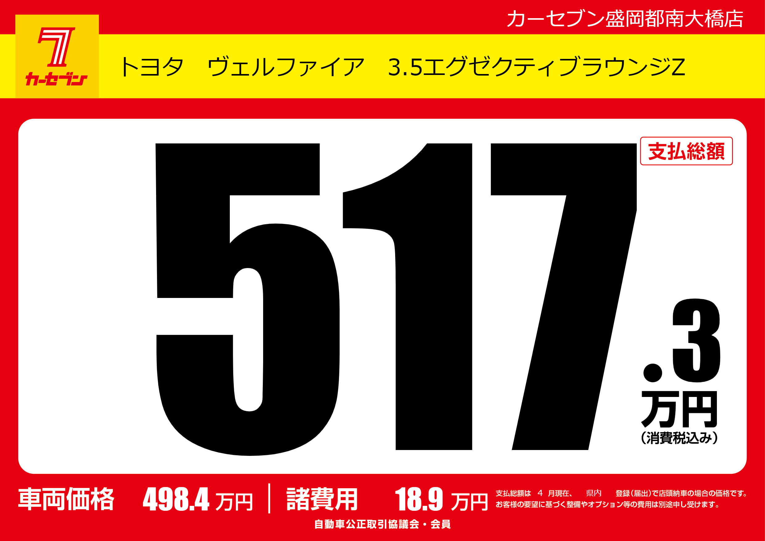 | 車名 | トヨタ ヴェルファイア 3.5エグゼクティブラウンジZ | グレード ミッション 排気量 |