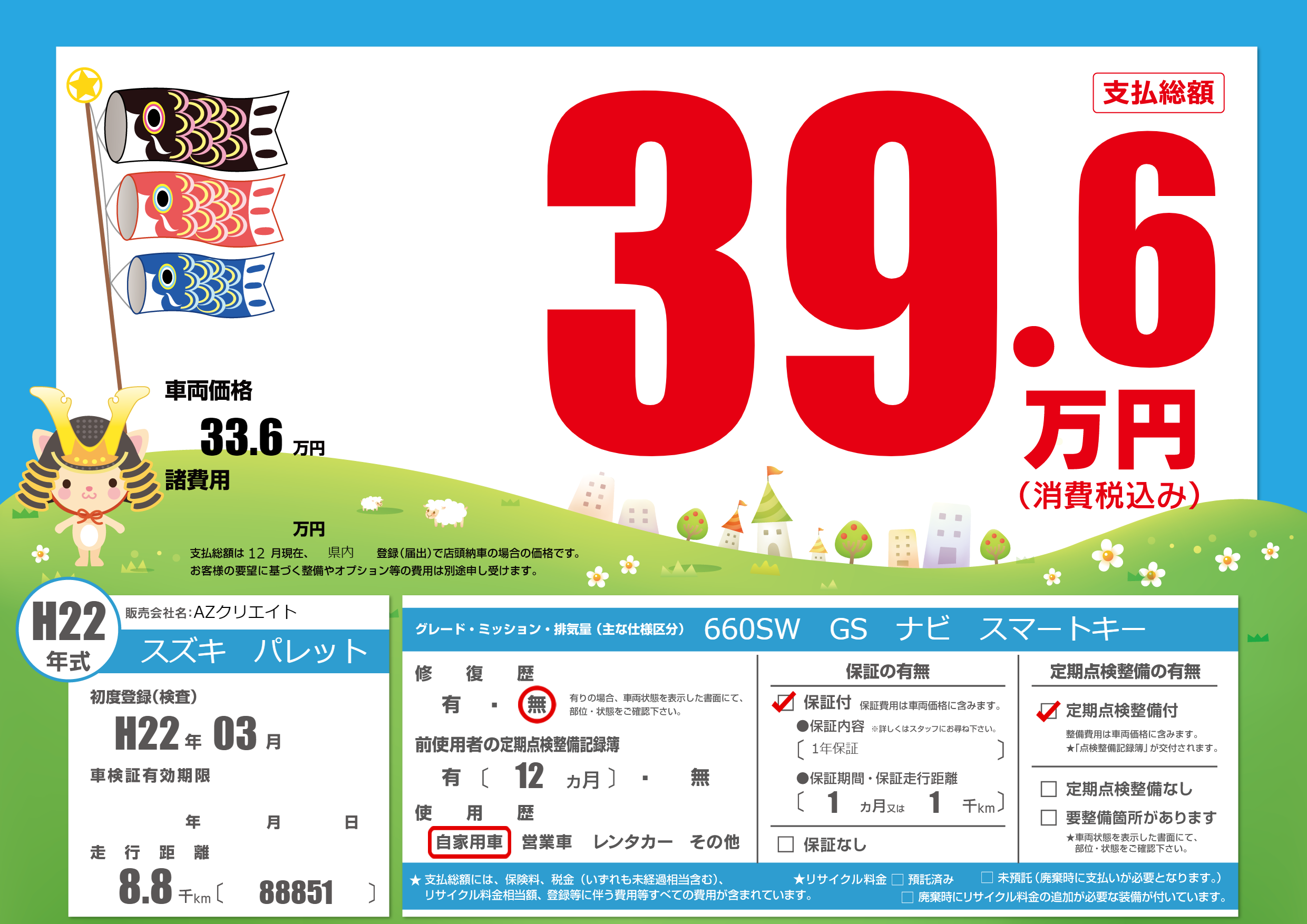 | 車名 | スズキ パレット | グレード ミッション 排気量 |