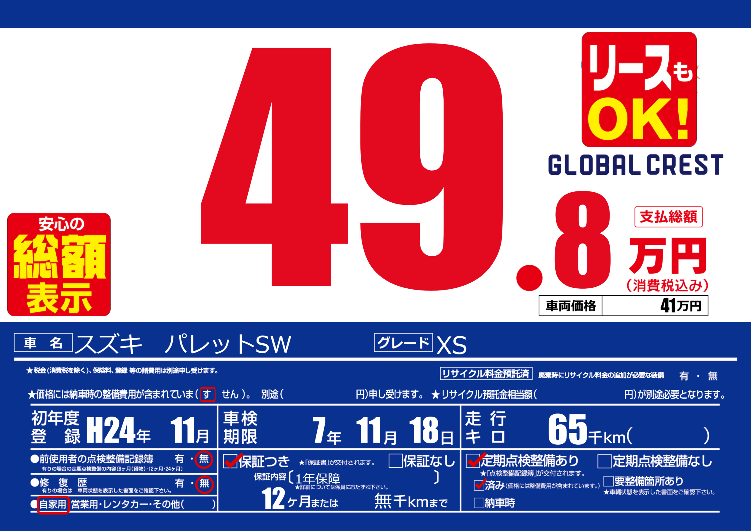 | 定期点検整備 | 定期点検整備あり 定期点検整備済み | ||