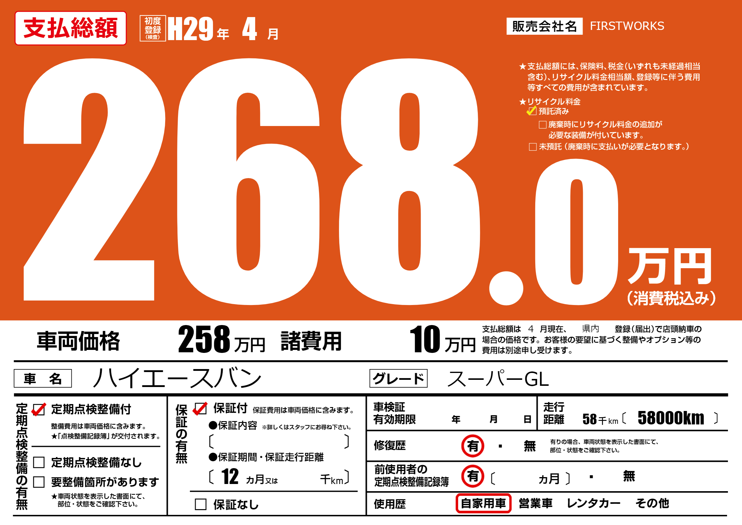 | 初年度登録 | H29年4月 | ||