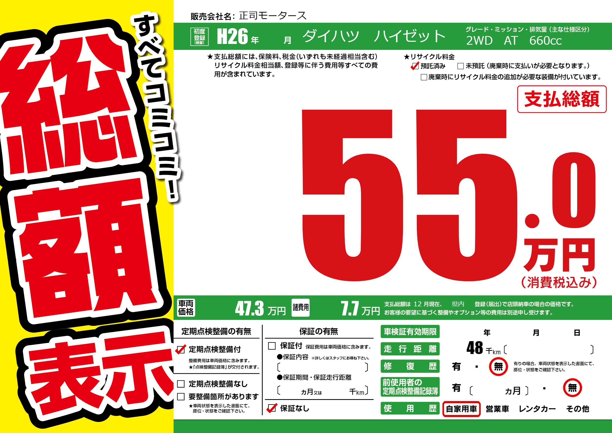 | 走行キロ | 4.8万km | 初年度登録 | H26年---月 |