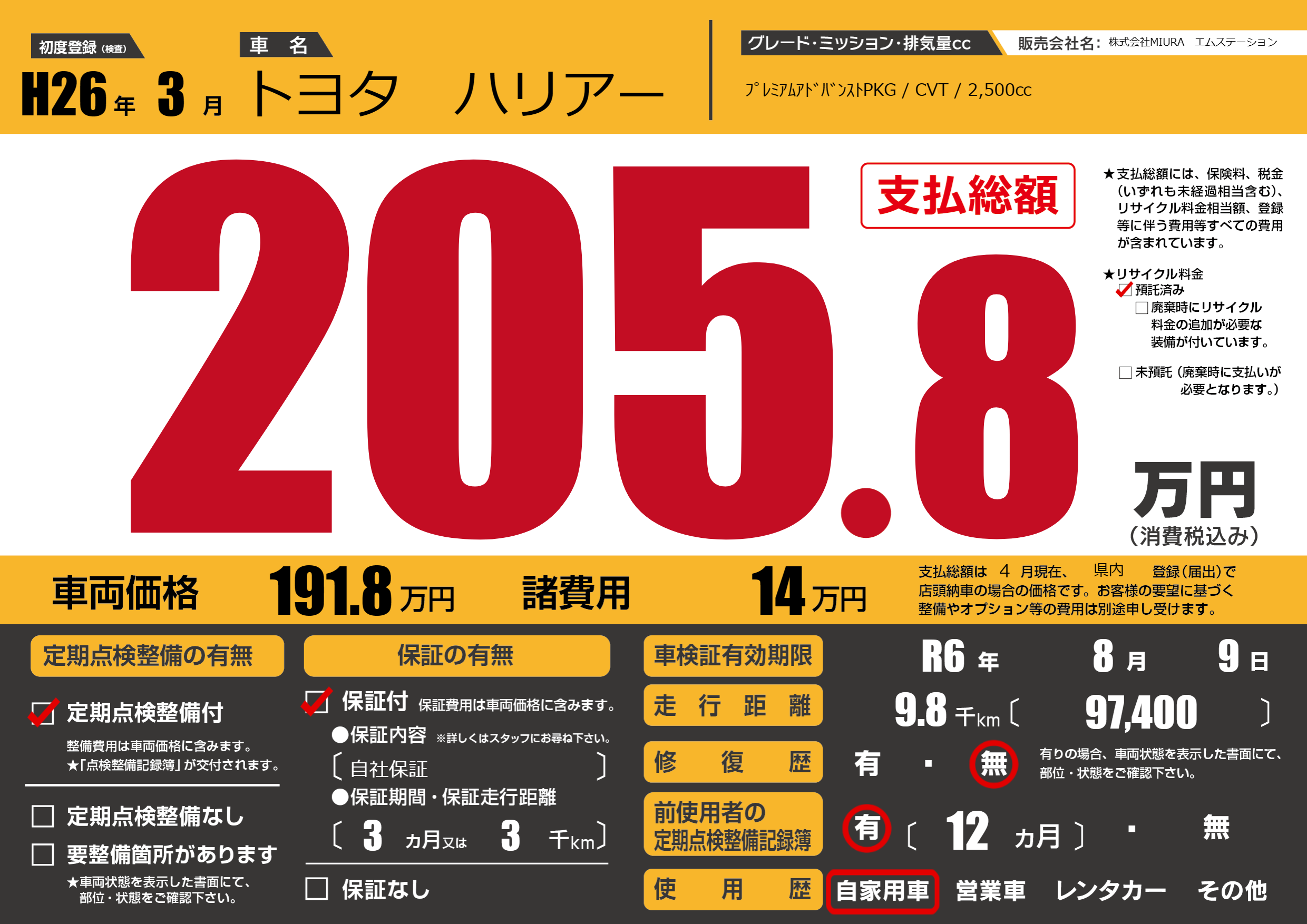 保証付き 保証内容(自社保証) 3ヶ月または3千km |