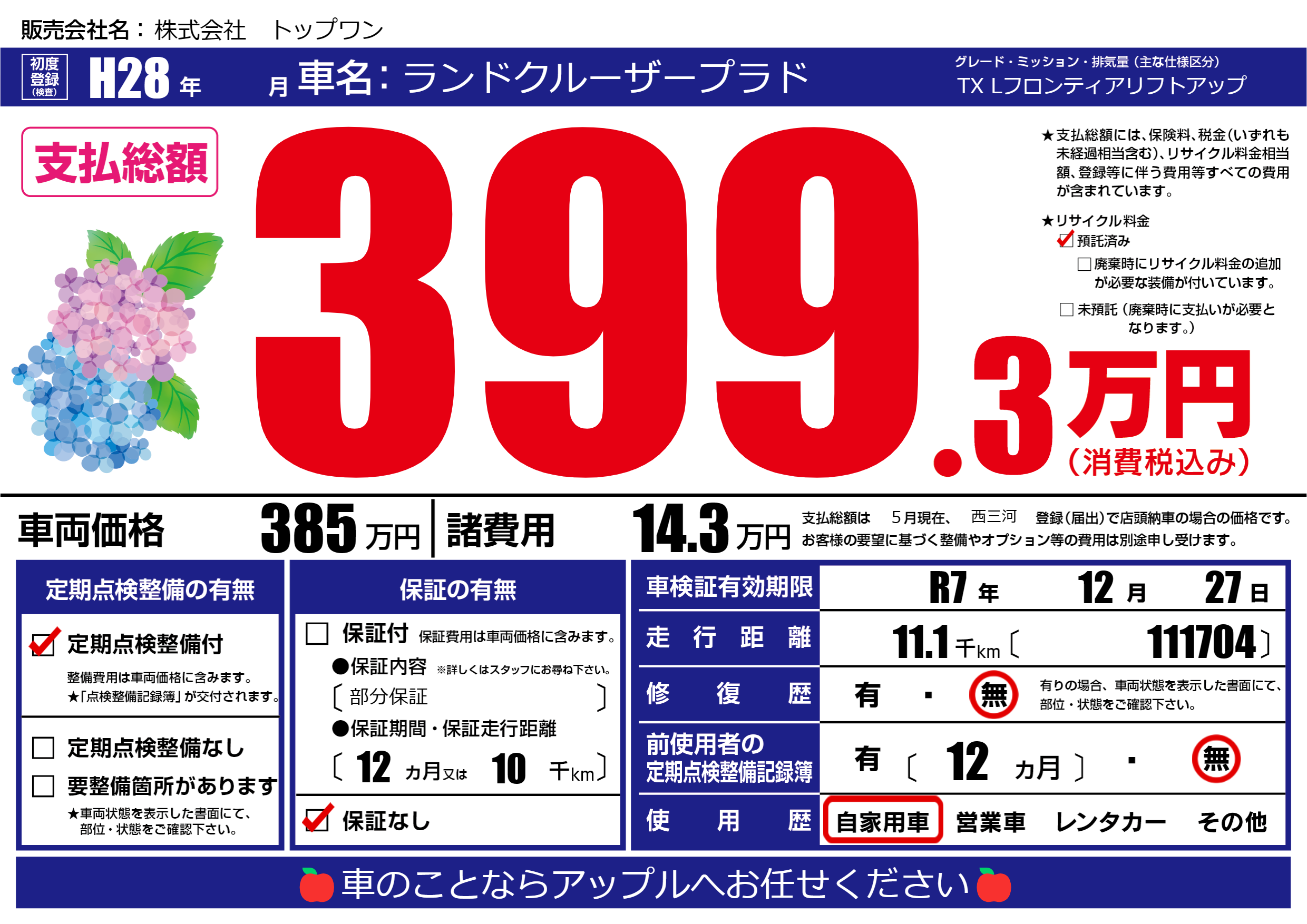 なし | 車検制限 | R7年12月27月 |