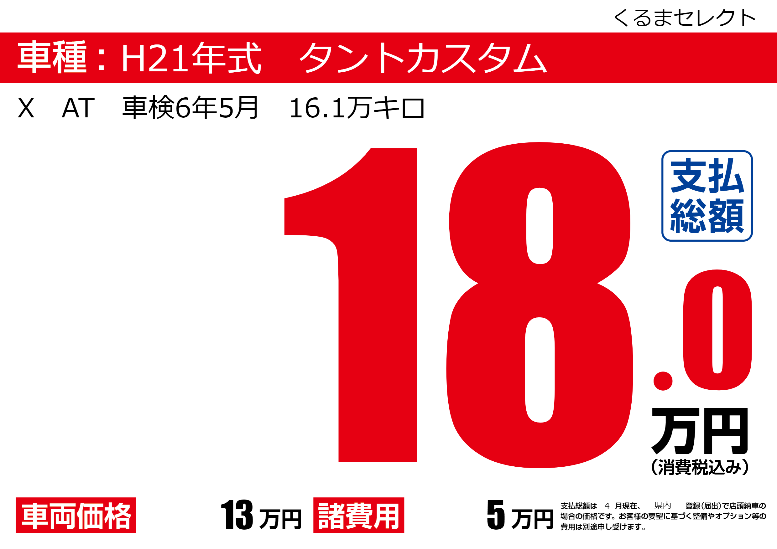 | 車名 | H21年式 タントカスタム | グレード ミッション 排気量 |
