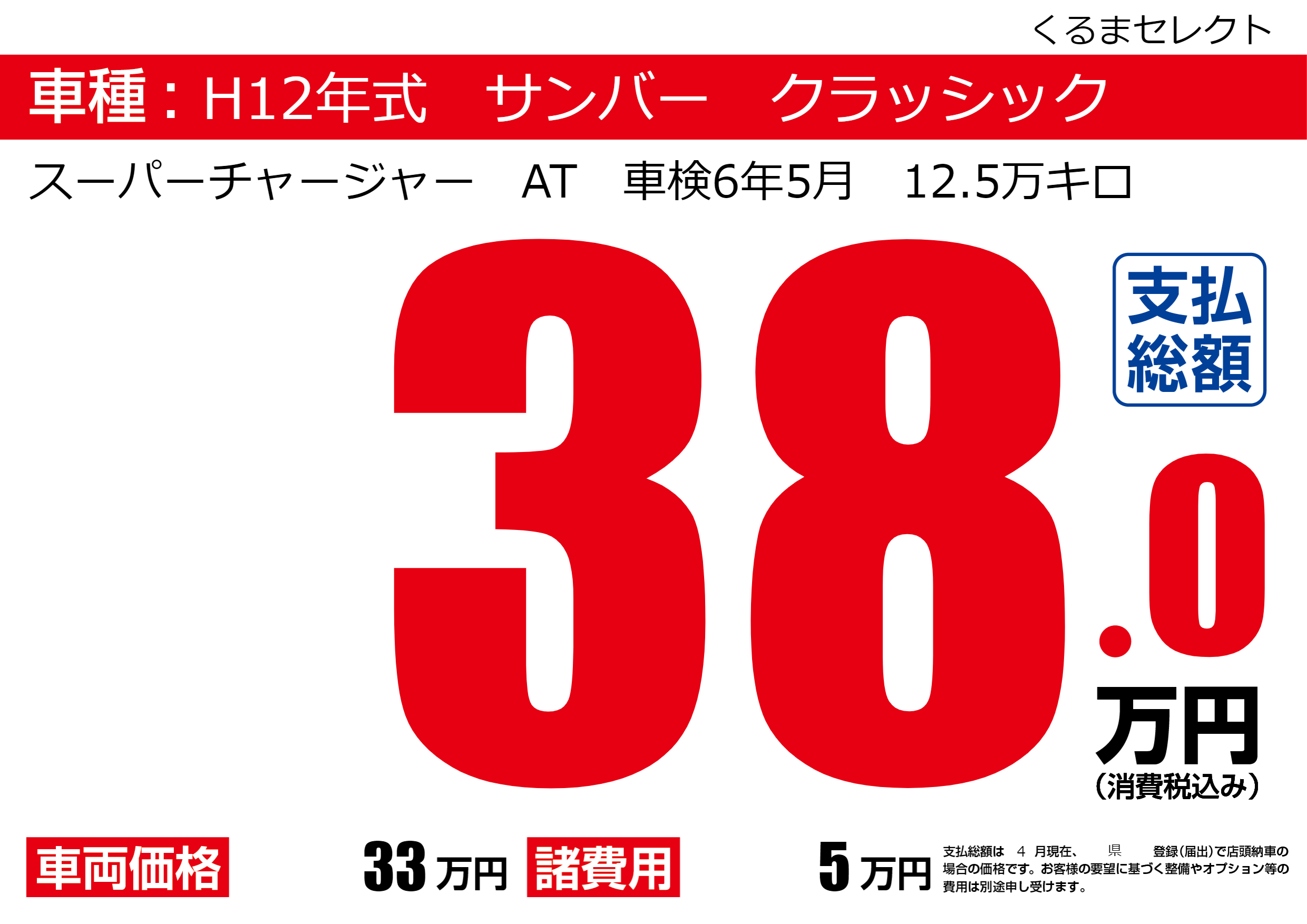 | 車名 | H12年式 サンバー クラッシック | グレード ミッション 排気量 |