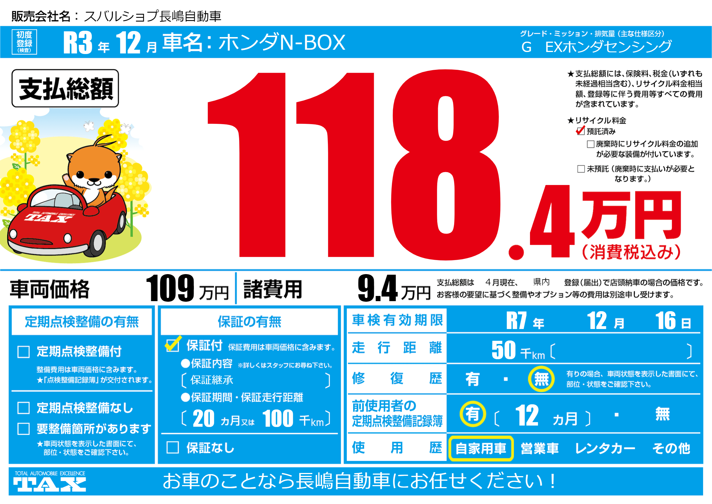 | 車検制限 | R7年 12月 16日 | ||