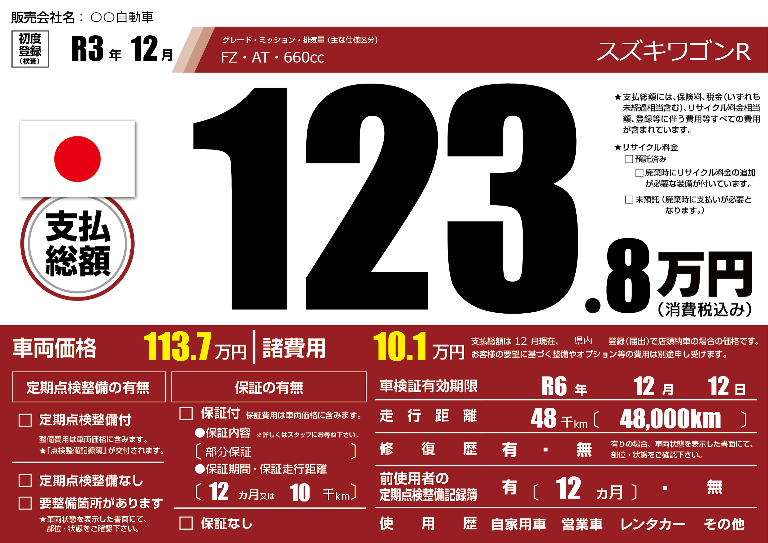 なし | 車検制限 | R6年12月12月 |
