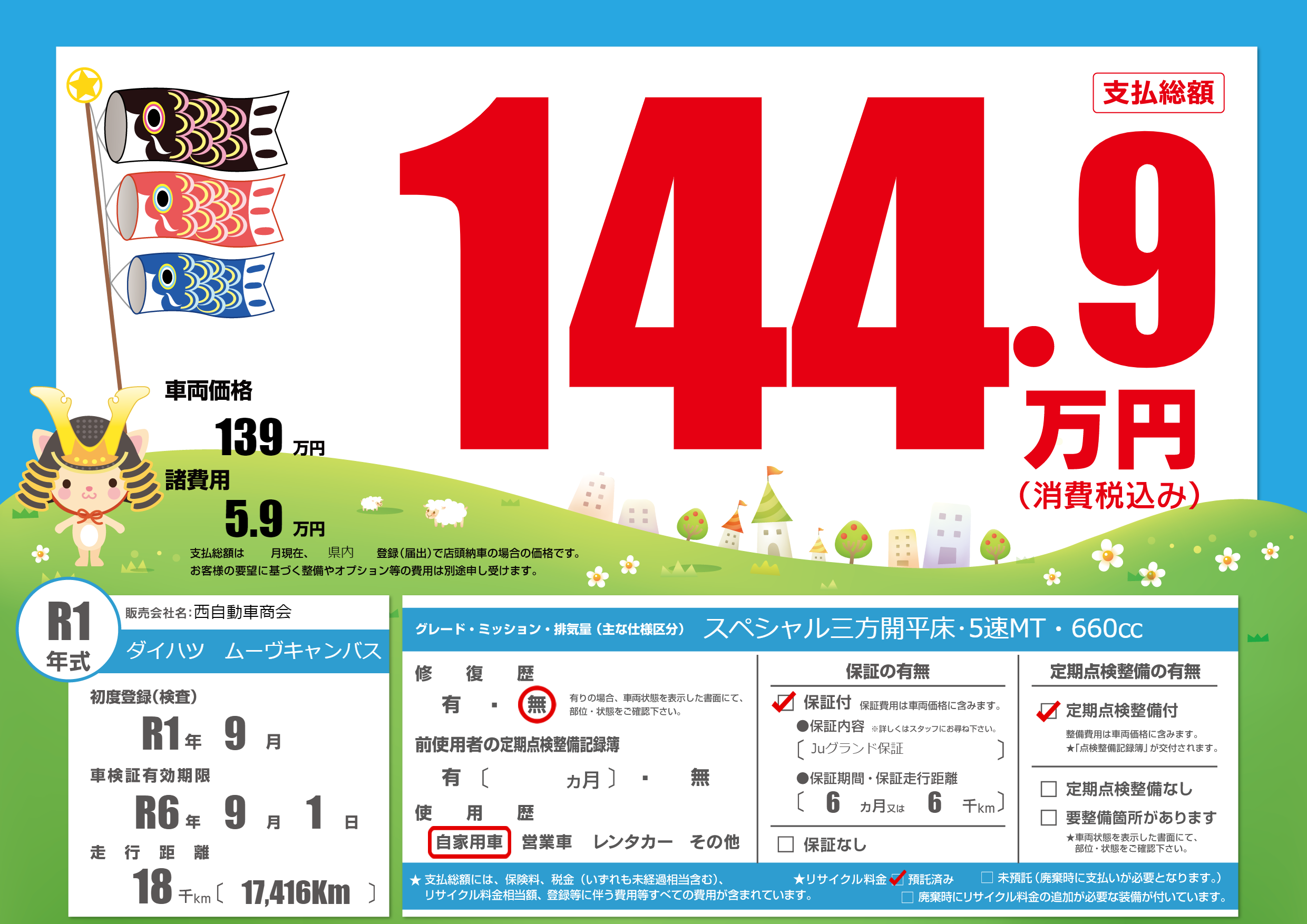 | 走行キロ | 1.8万km | 初年度登録 | R1年9月 |