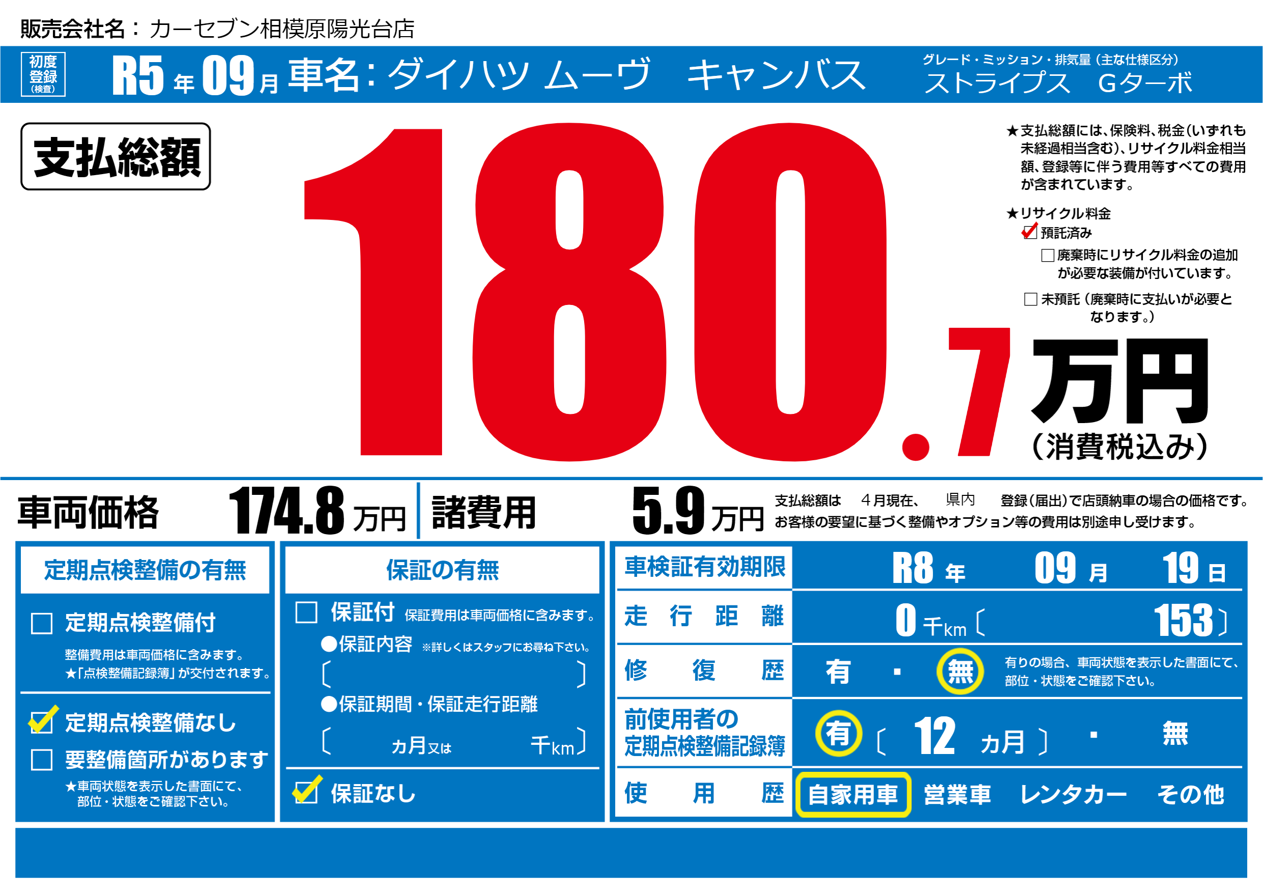 | 走行キロ | - | 初年度登録 | R5年09月 |