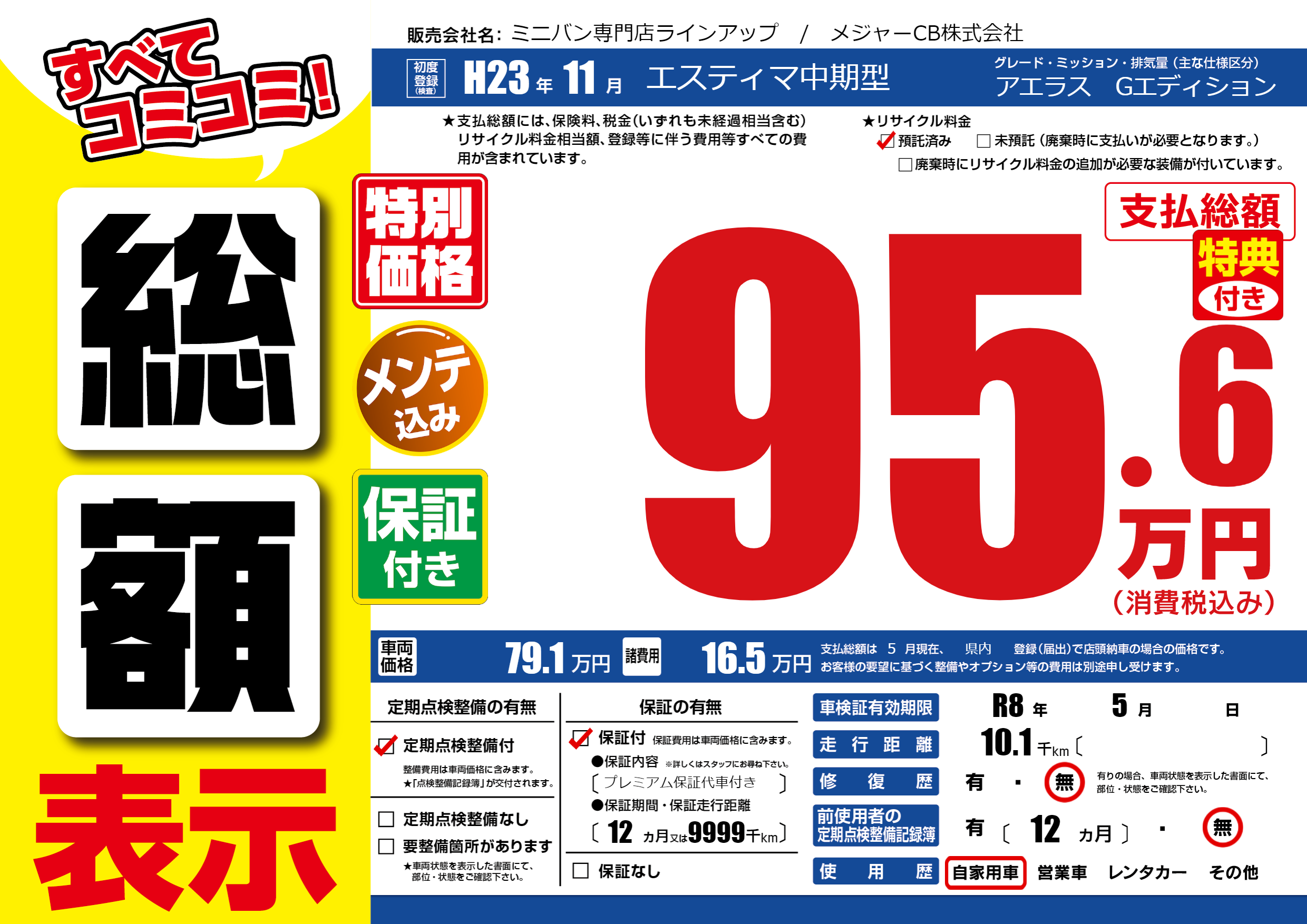 | 車名 | エスティマ中期型 | グレード ミッション 排気量 |