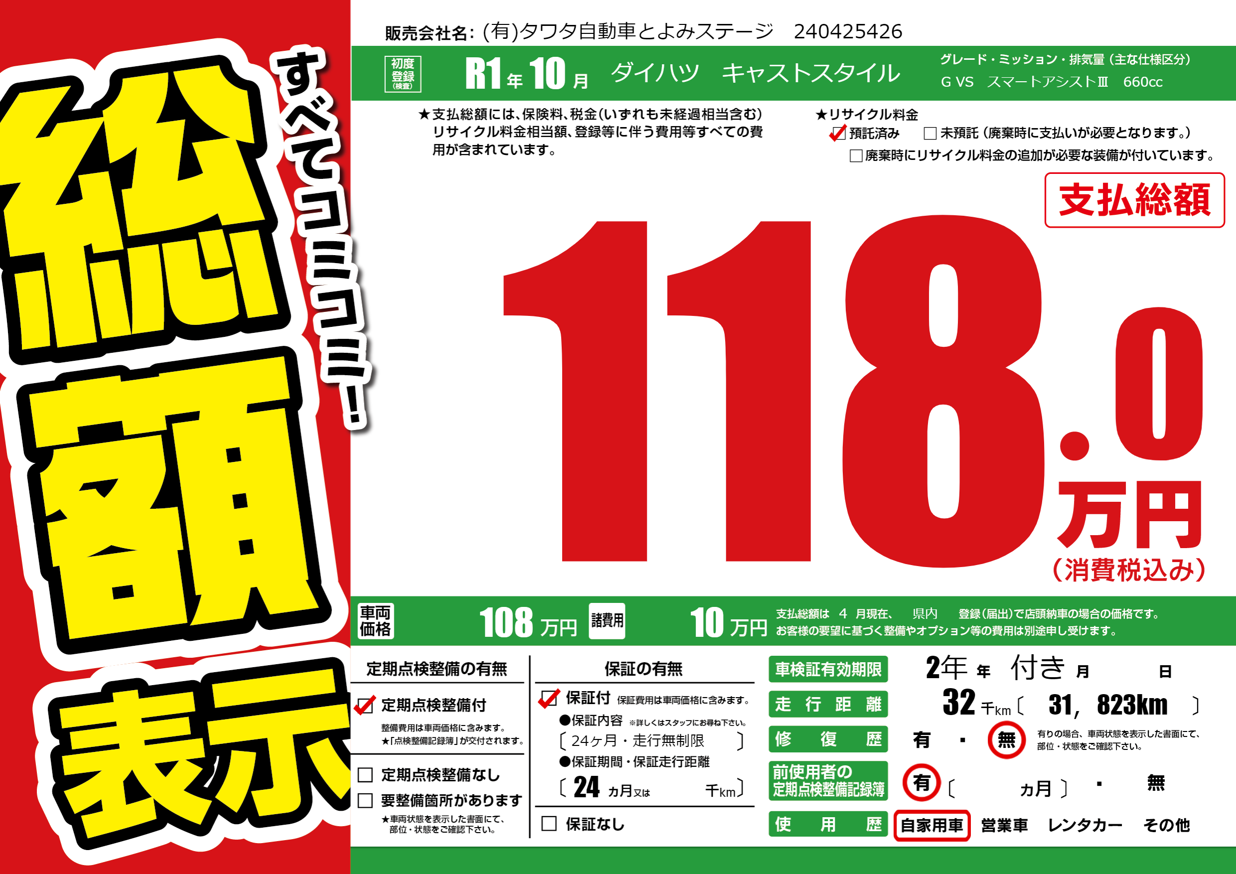 | 車名 | ダイハツ キャストスタイル | グレード ミッション 排気量 |