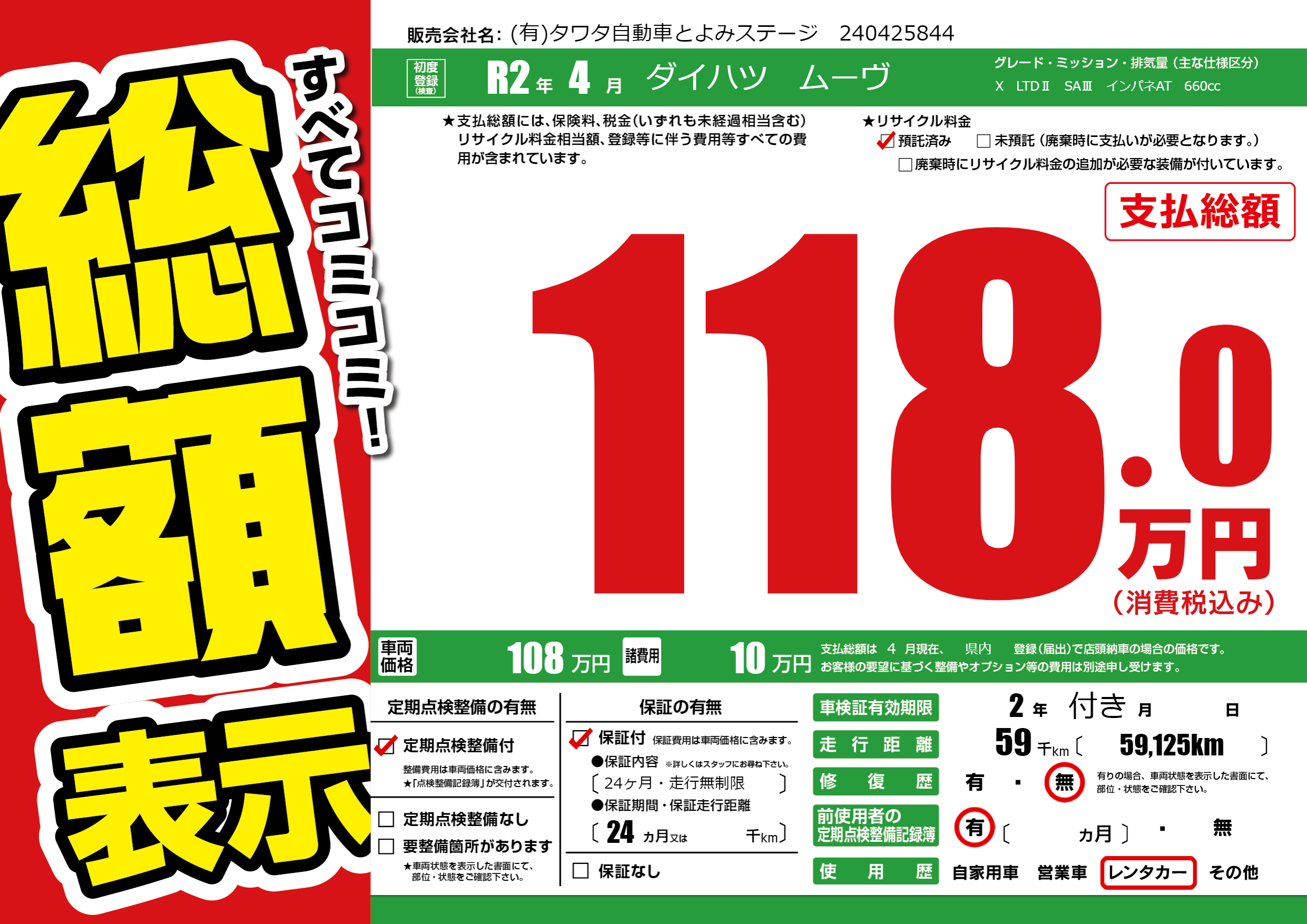 | 車名 | ダイハツ ムーヴ | グレード ミッション 排気量 |